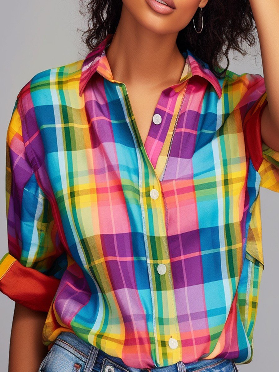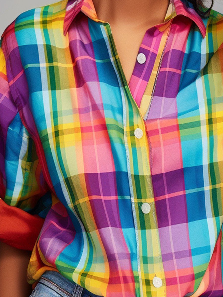 Women's Rainbow Plaid Gradient Art Casual Shirt
