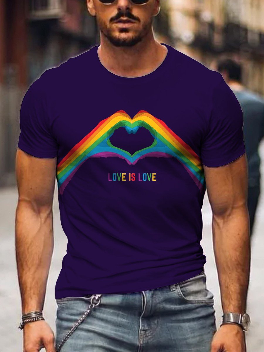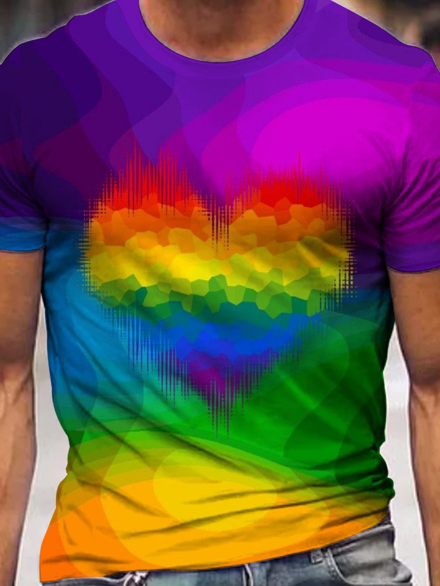 Men's Rainbow Love Beat Gay Art Casual Print T-Shirt