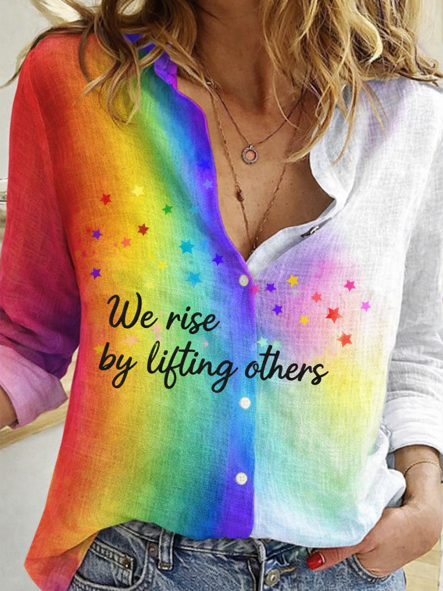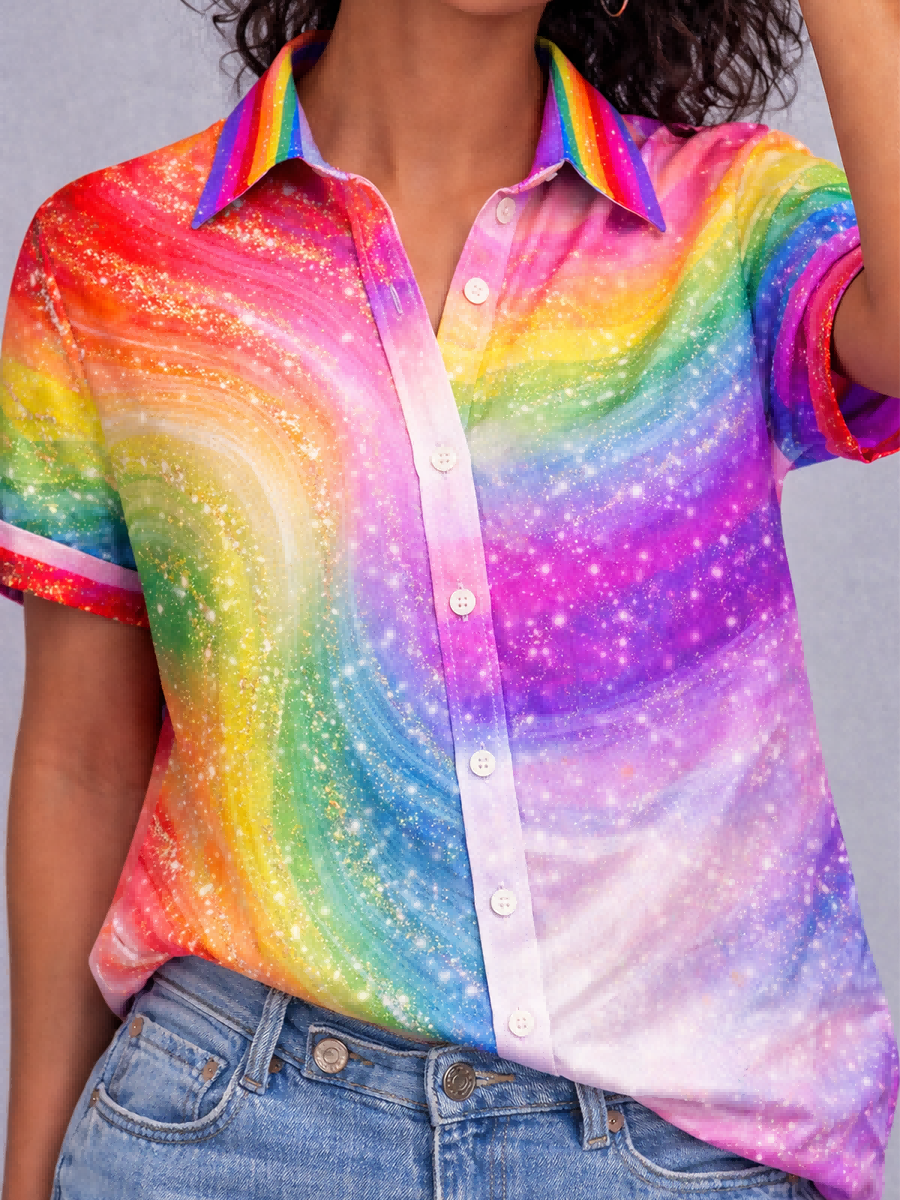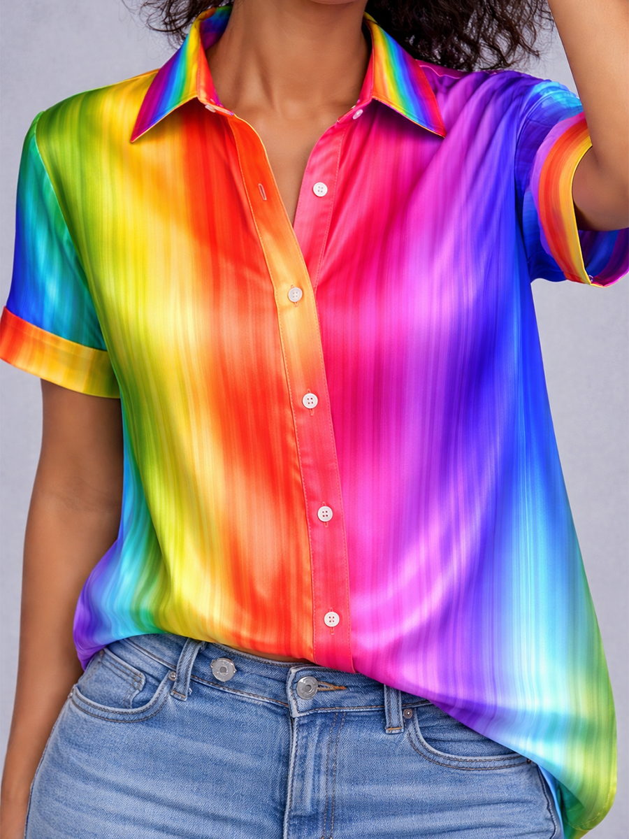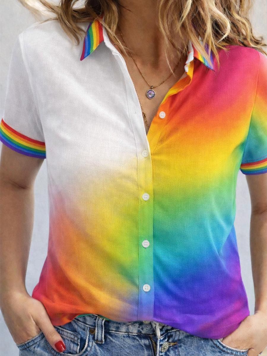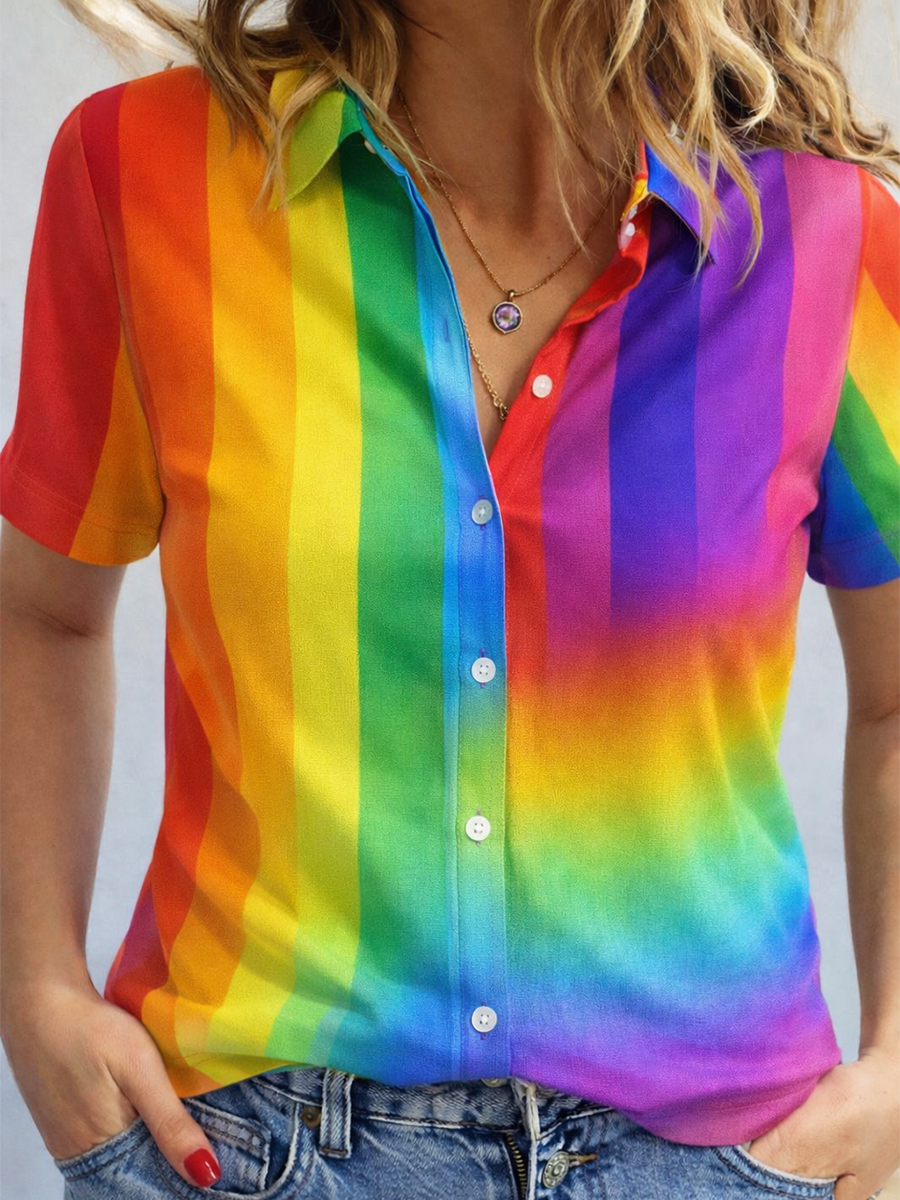 Women's Gay Month Rainbow Print Casual Lapel Shirt
