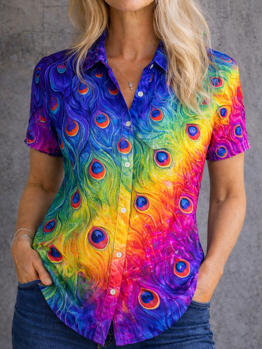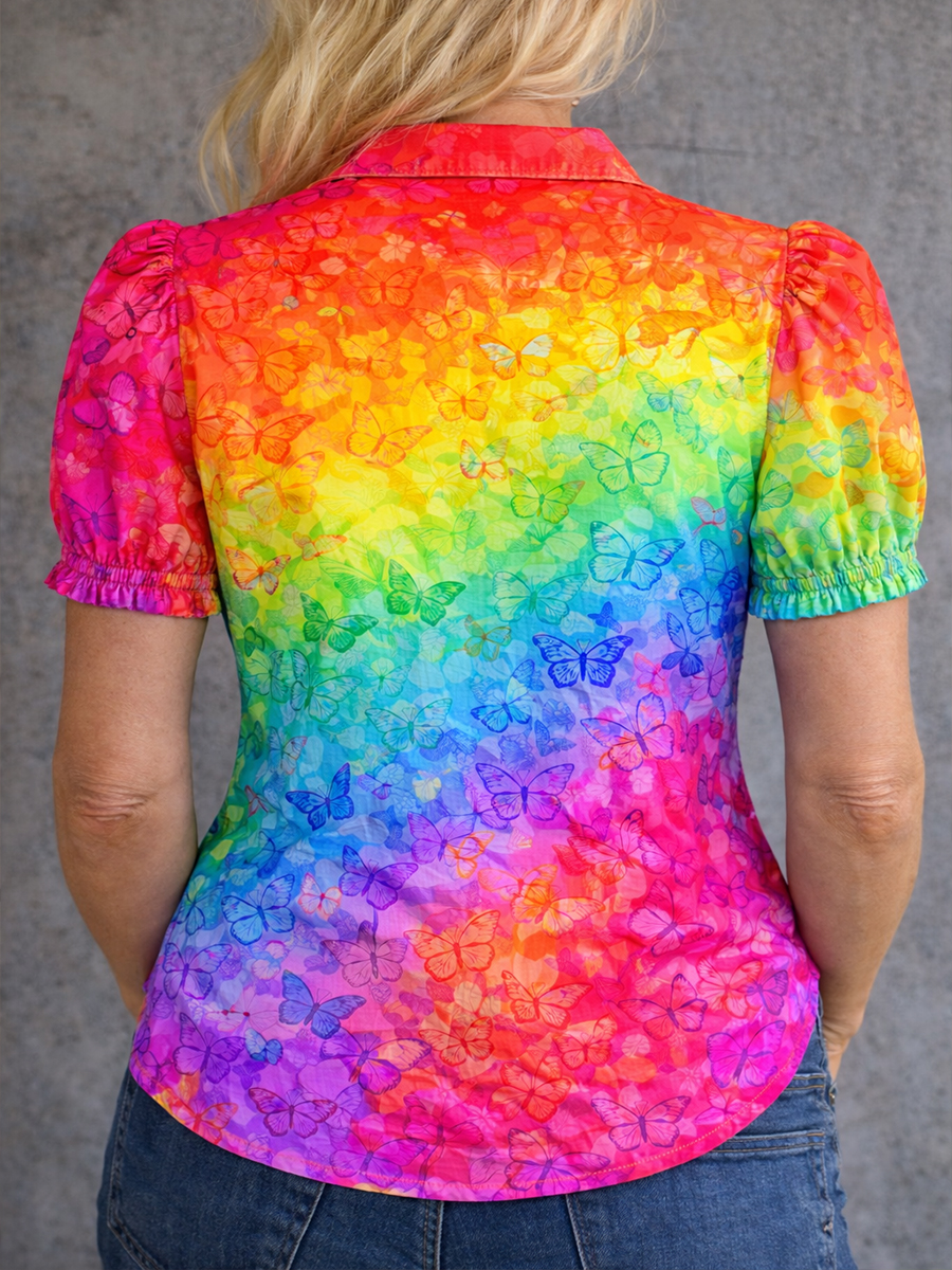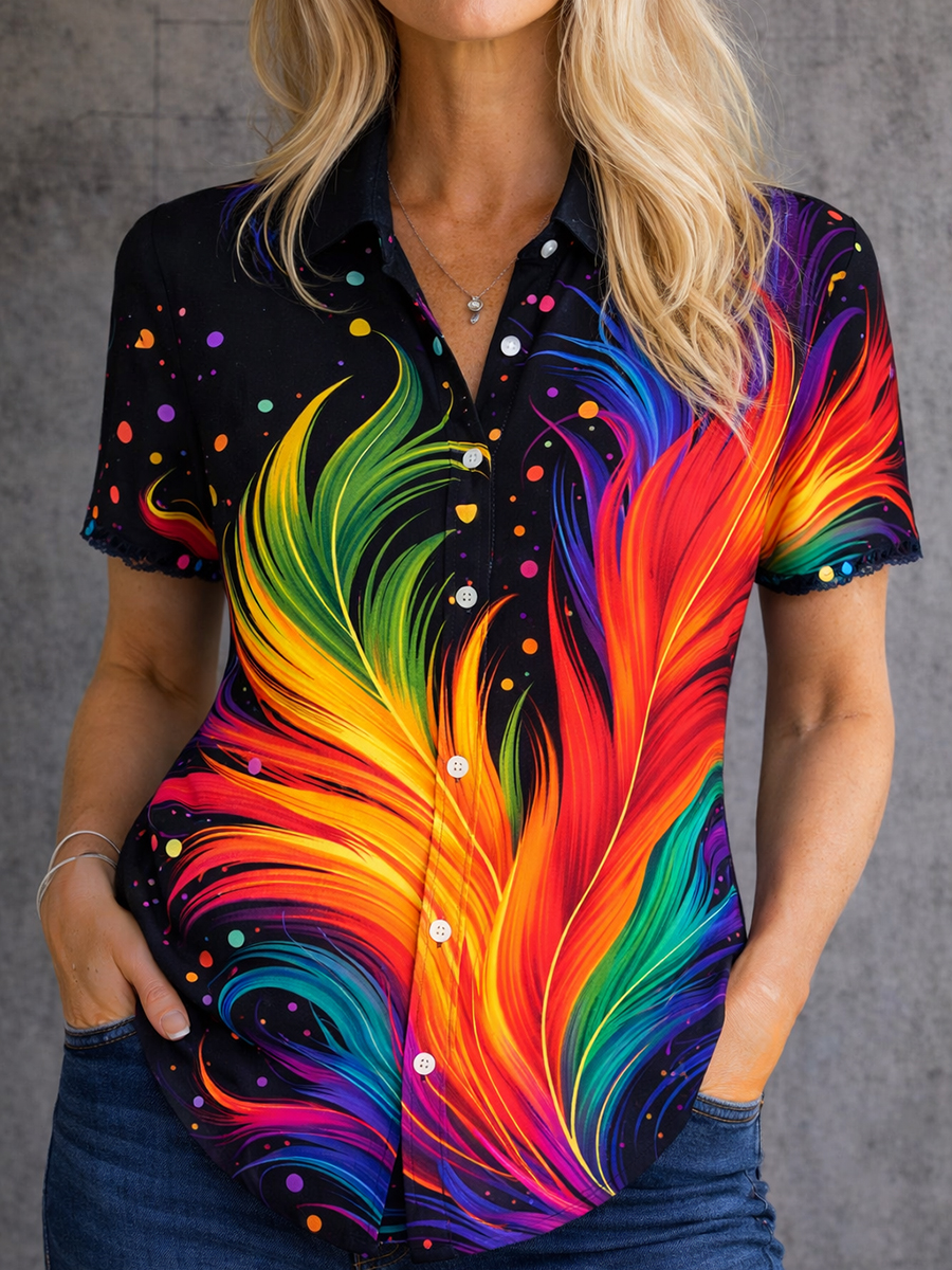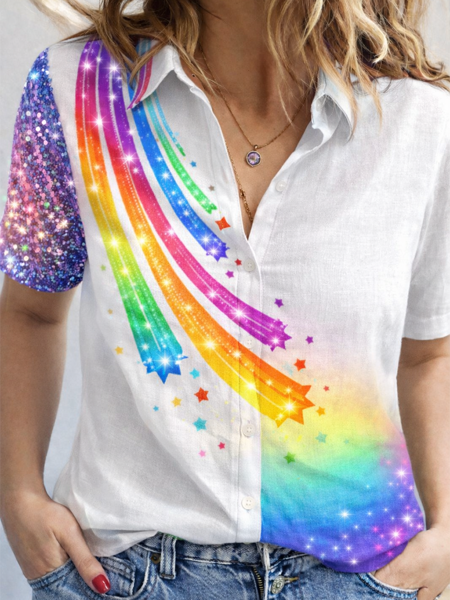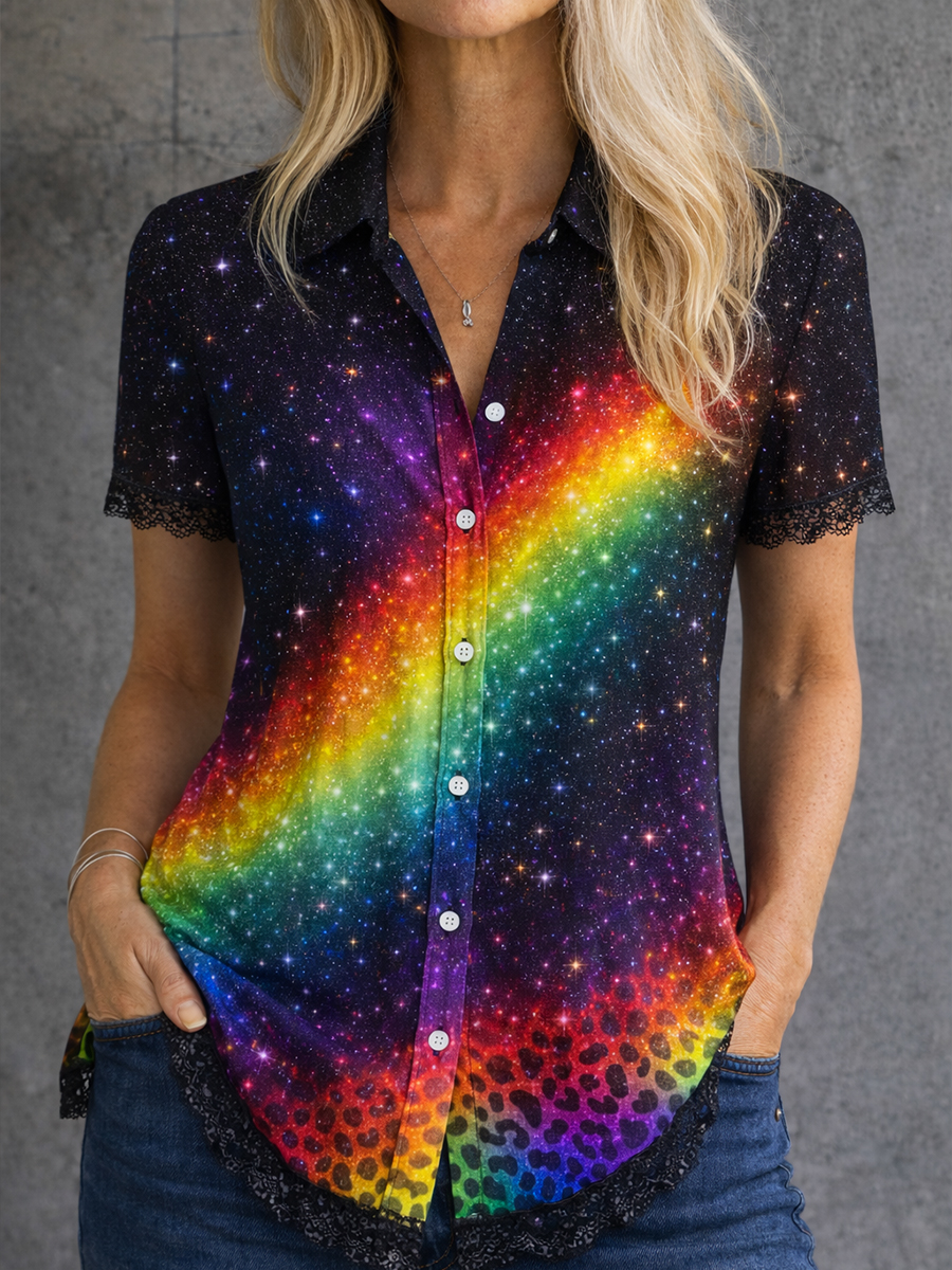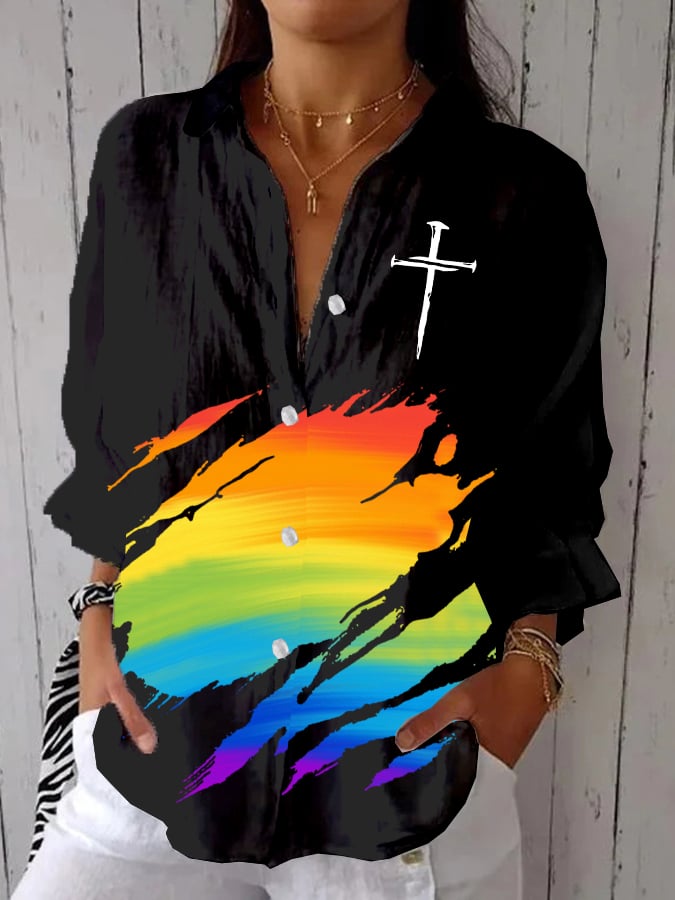 Women's Gay Month Rainbow Print Casual Lapel Shirt