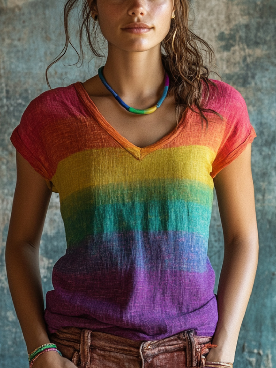 Pride Month LGBT Rainbow Gay Cotton and Linen T-Shirt