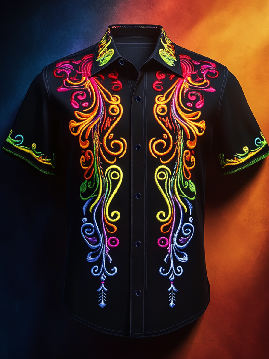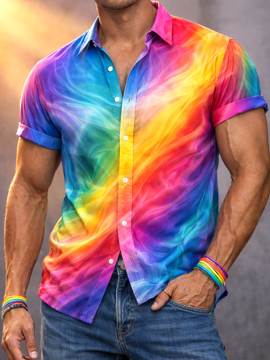 Men's Luminous Rainbow Gradient Print Short-Sleeved Shirt