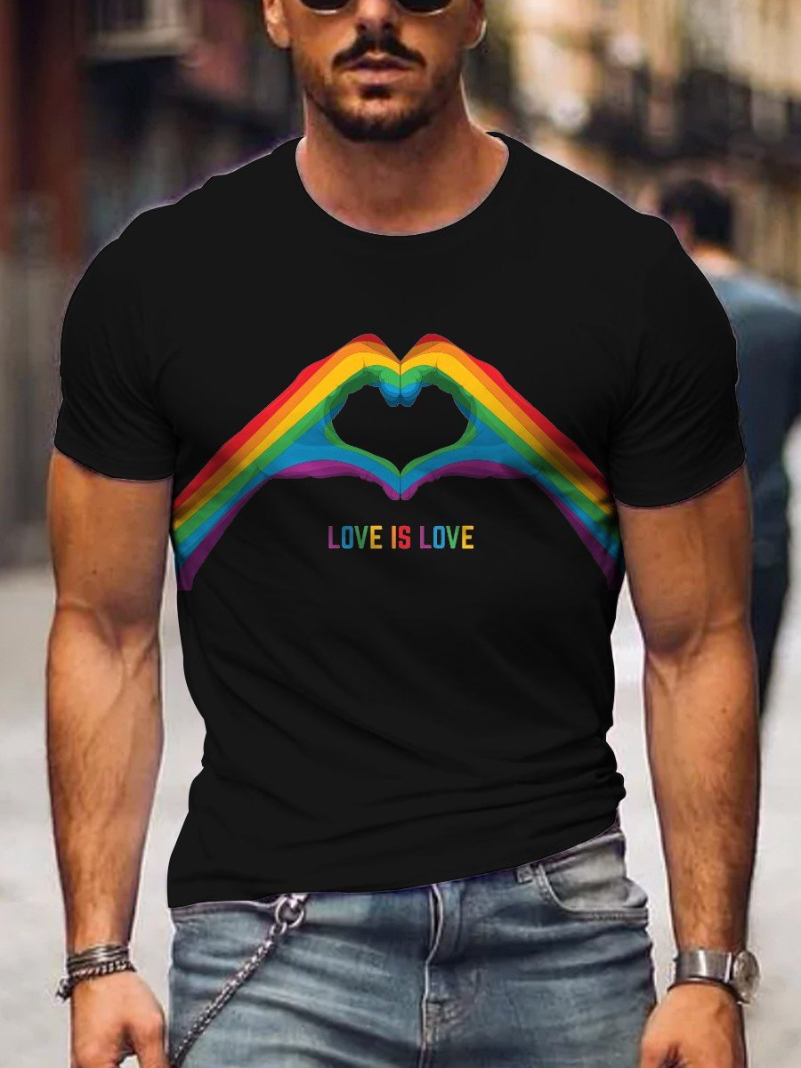 Men's Rainbow Hands Love Is Love Gay Print Casual T-Shirt