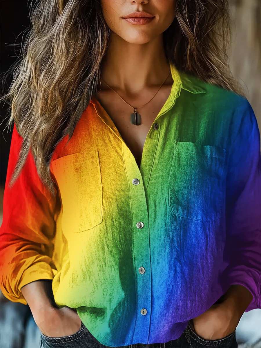 LGBT Gay Rainbow Gradient Pride Month Cotton and Linen Long Sleeve Shirt