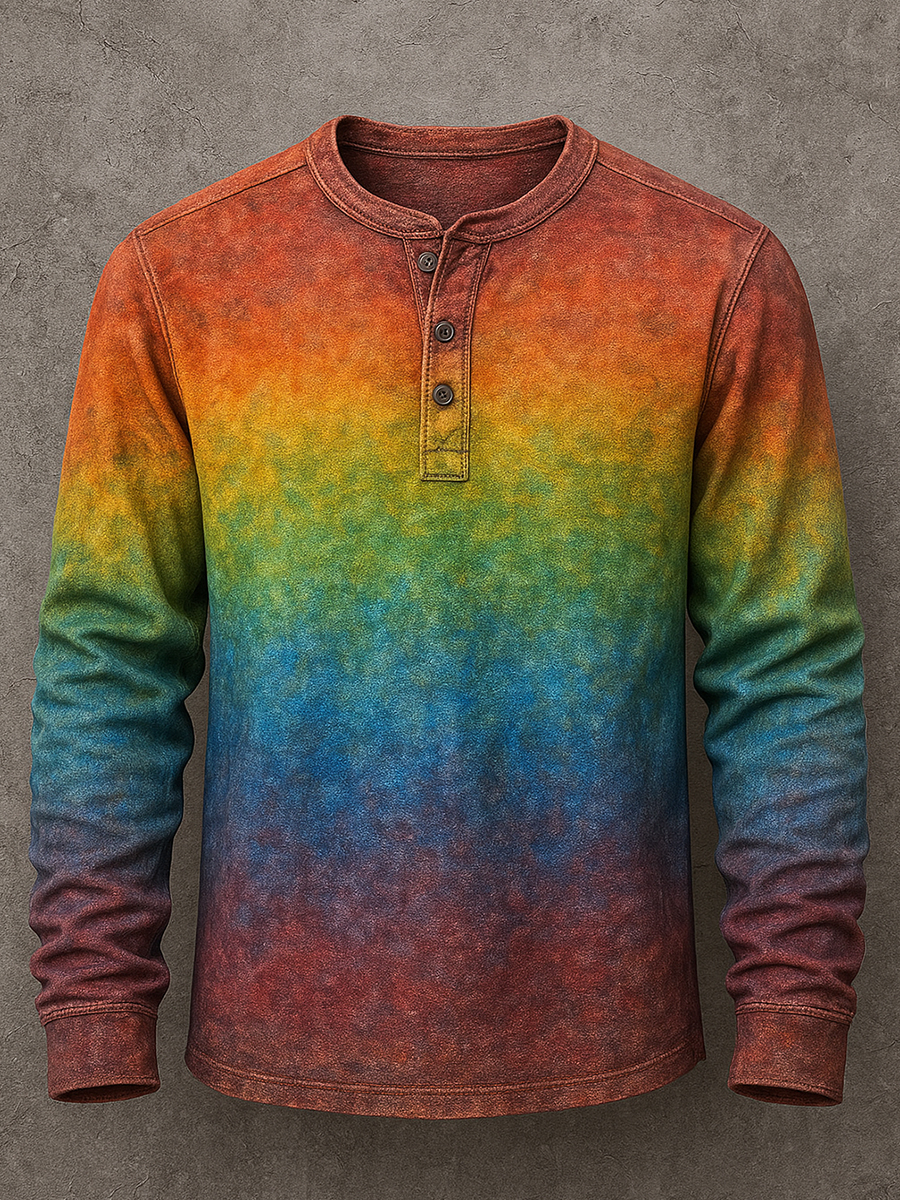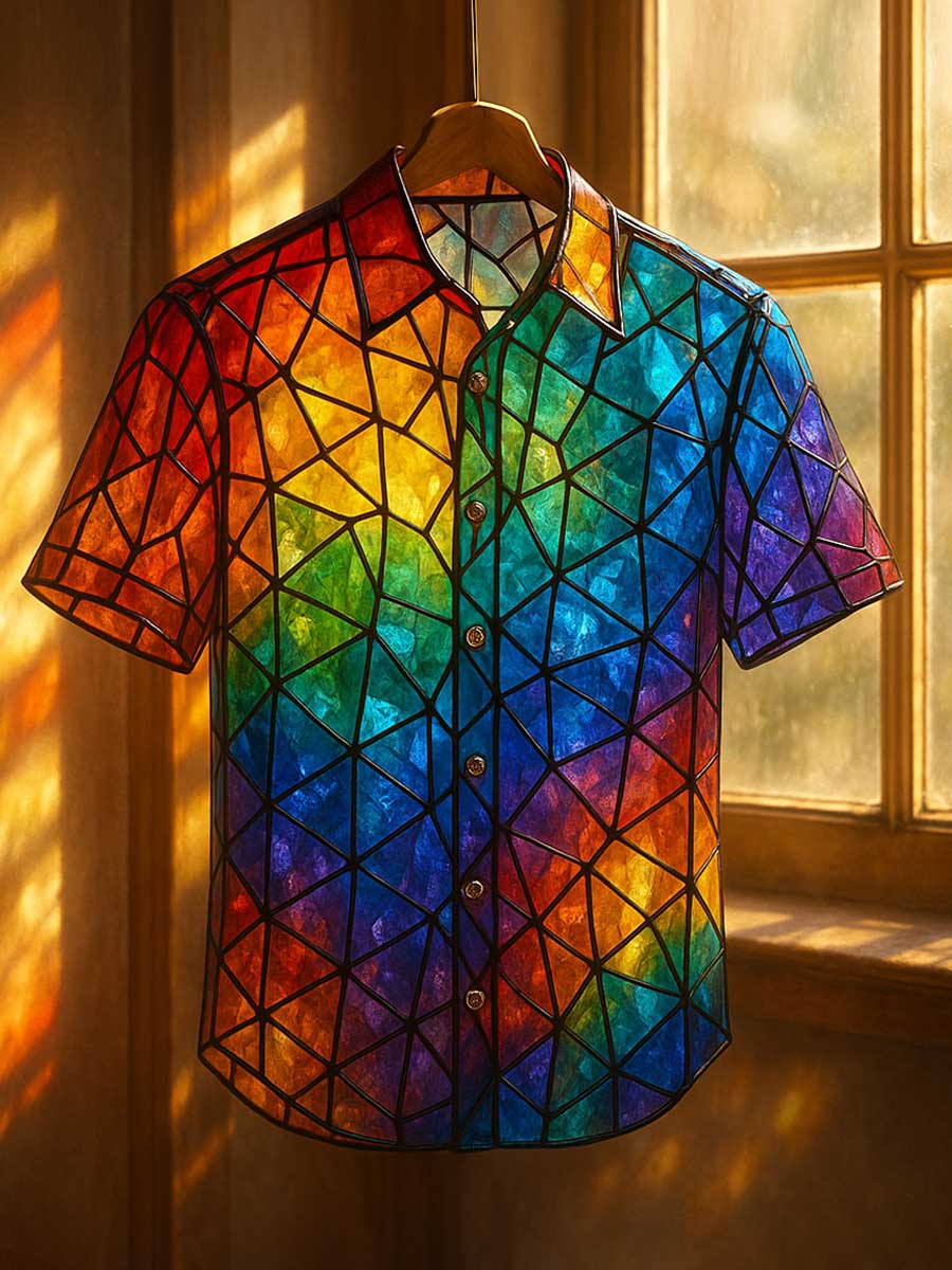 Rainbow Gradient Art Print Casual Short Sleeve Shirt