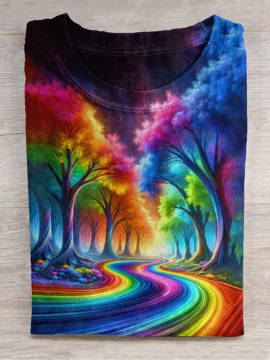 Unisex Rainbow Forest Art Print Short Sleeve Casual T-Shirt