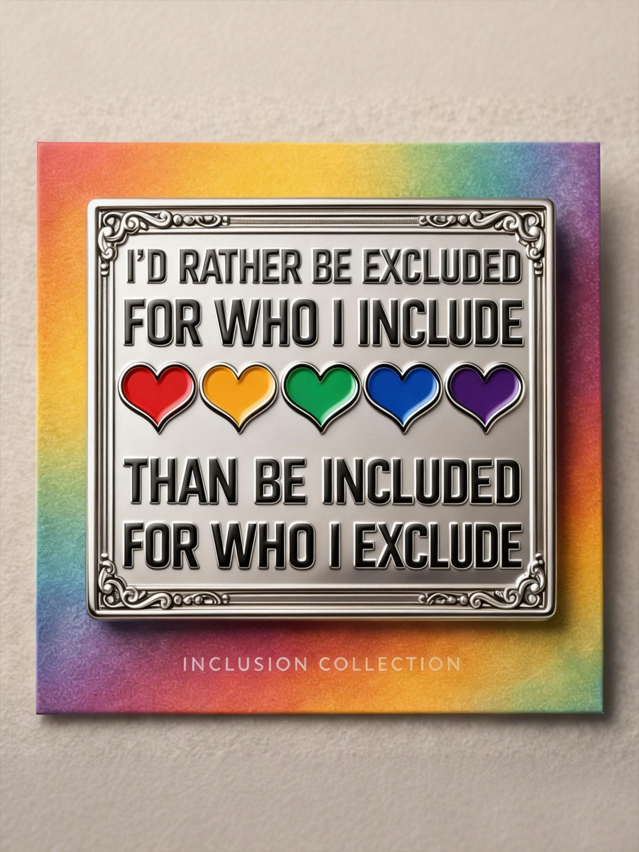 “I’d Rather Be Excluded for Who I Include” Rainbow Heart Inclusion Badge – Inspirational Equality Statement Pin