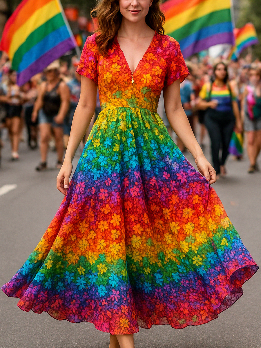 Women's Rainbow Flowers Pride Arti Casual Dress