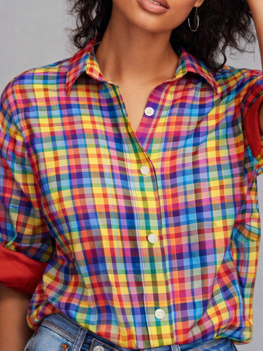 Pride Month LGBT Rainbow Plaid Art Print Casual Shirt