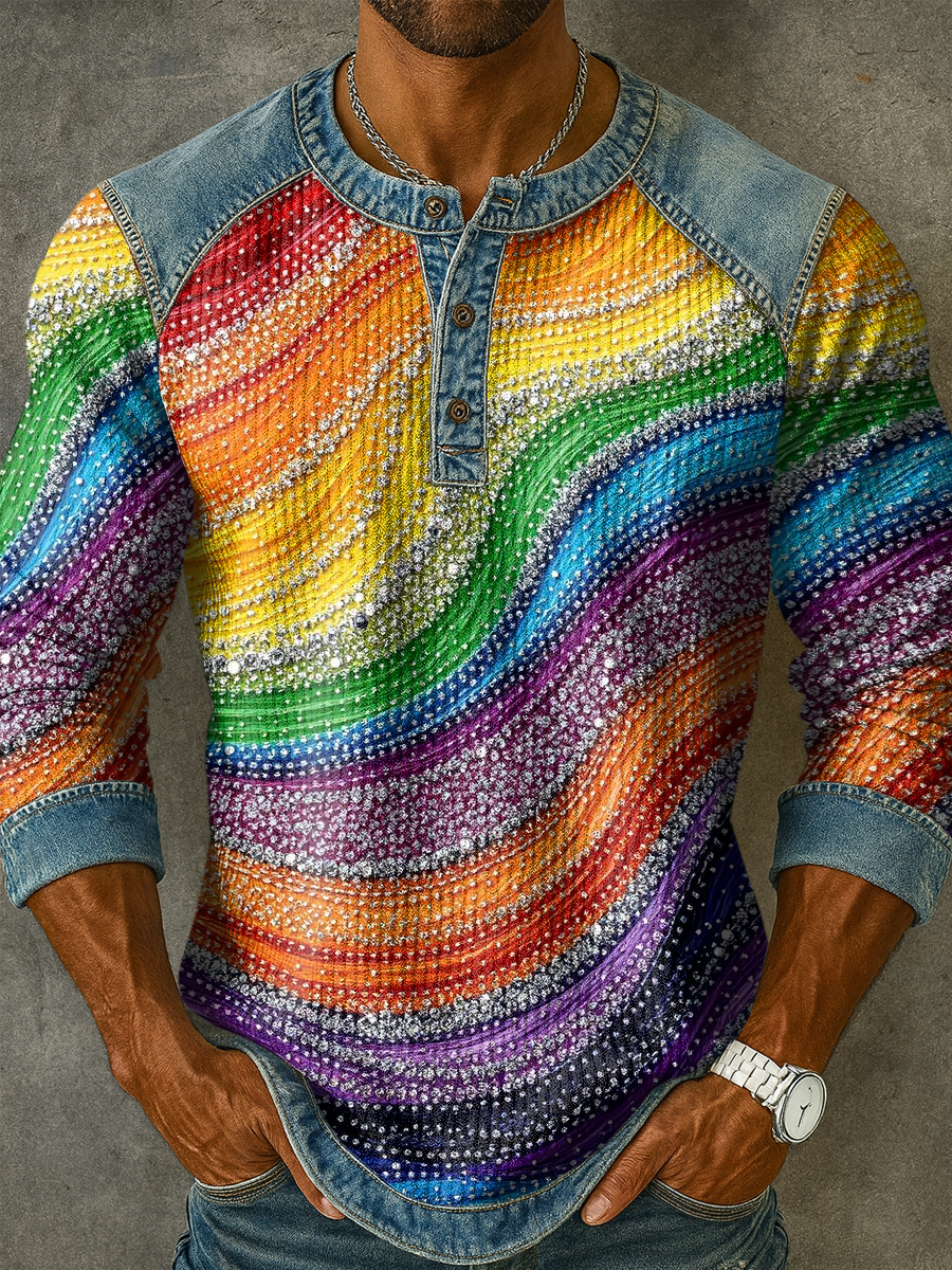 Rainbow Gradient Baroque Art Print Casual Short Sleeve Shirt