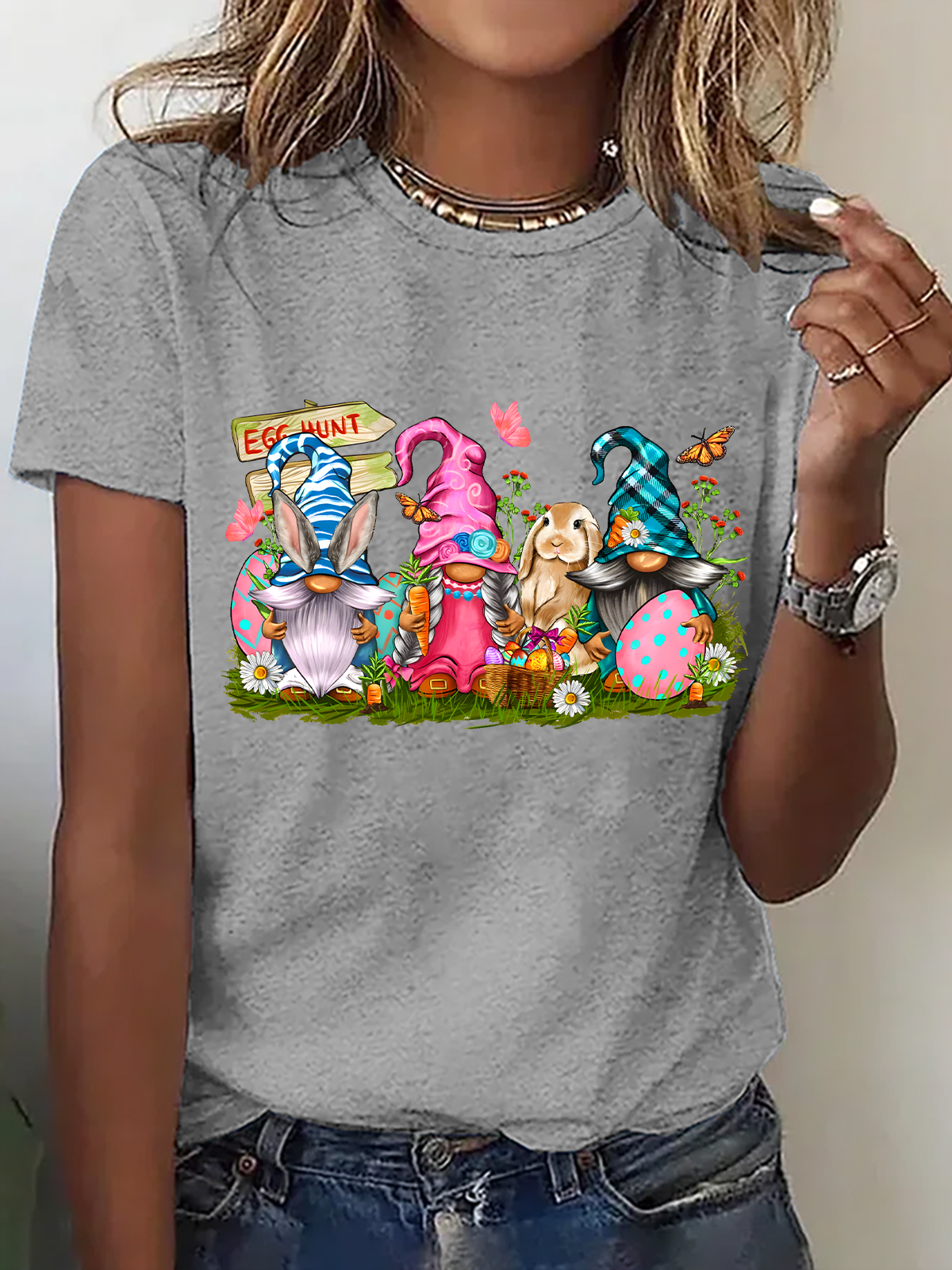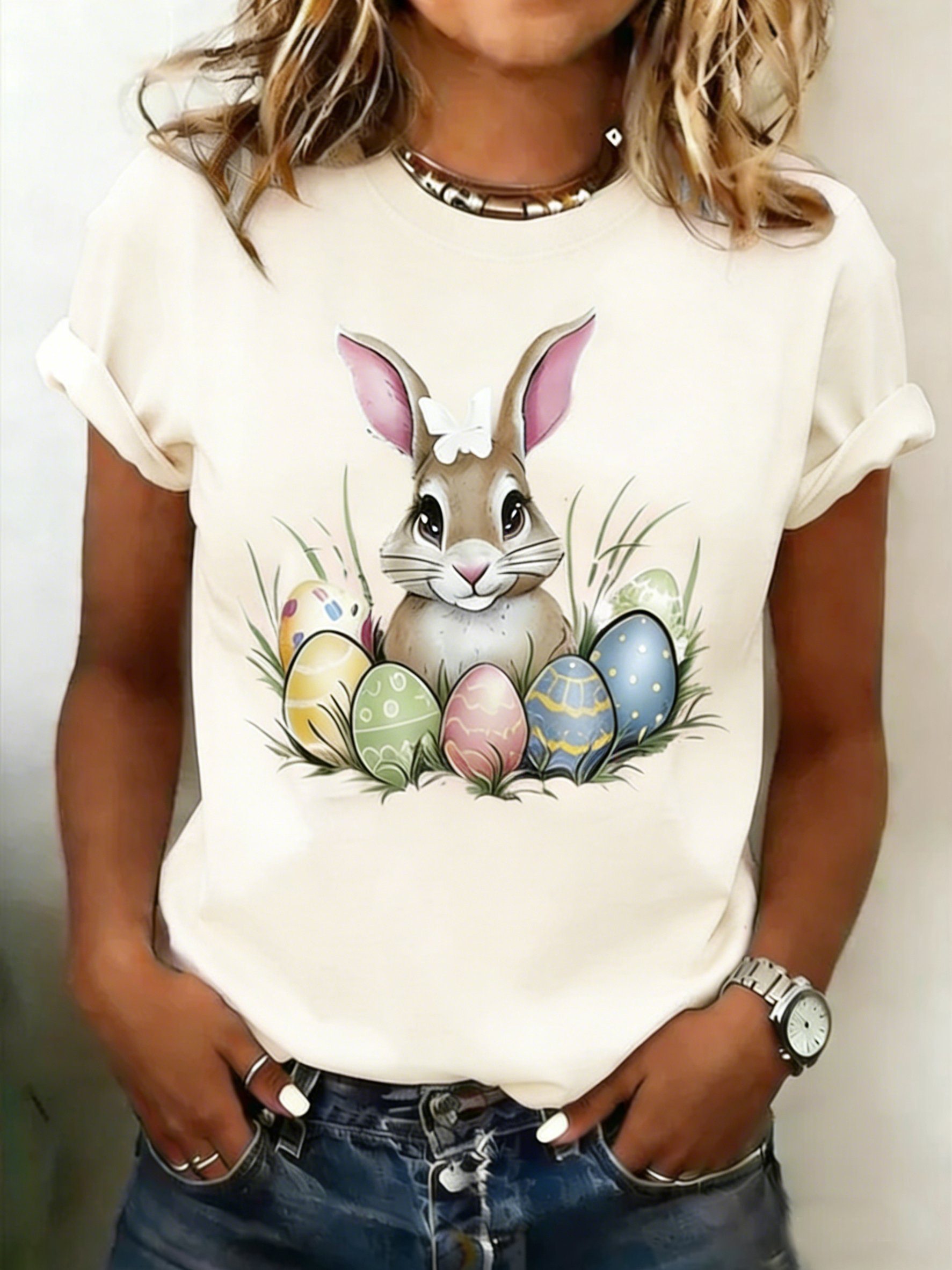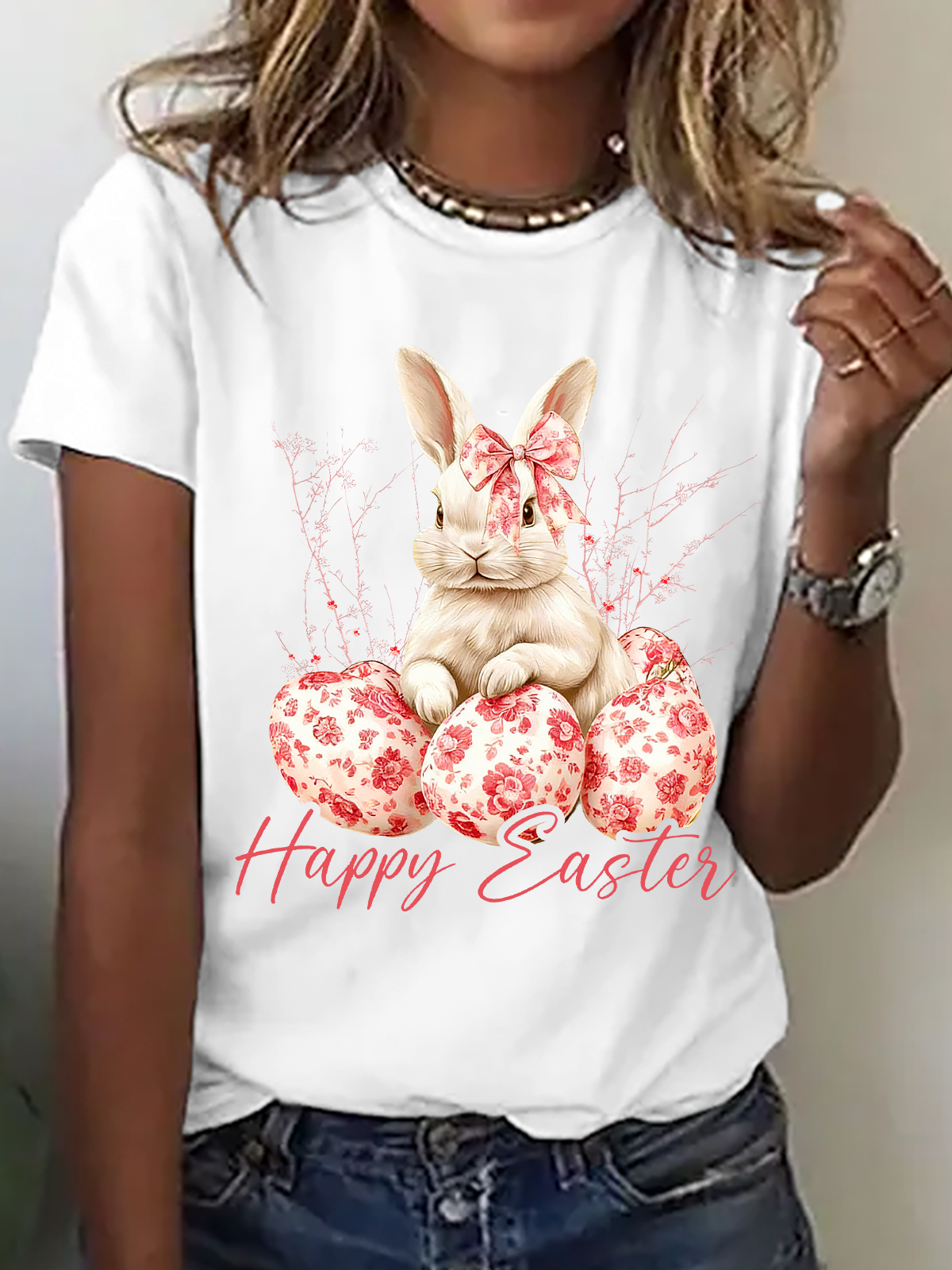 Women's Easter Rabbit Egg Crew Neck Short Sleeve Floral Summer Casual T-Shirt