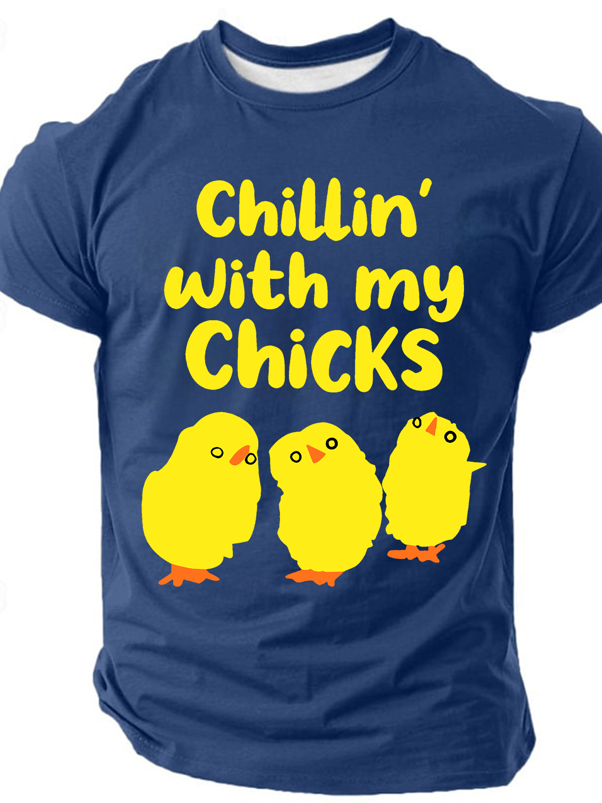 Chilling With My Chicks Funny Easter Cotton T-Shirt