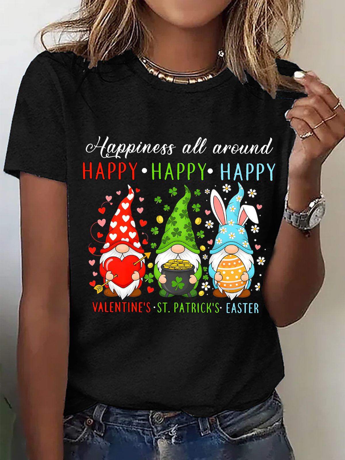 Women's Happy Valentines St Patrick Easter Happy Holiday Gnome Funny short-sleeved T-shirt