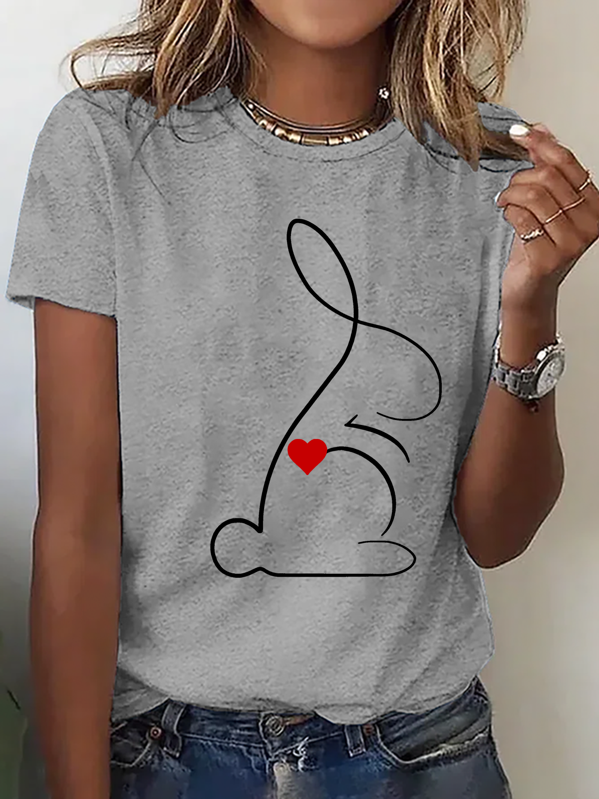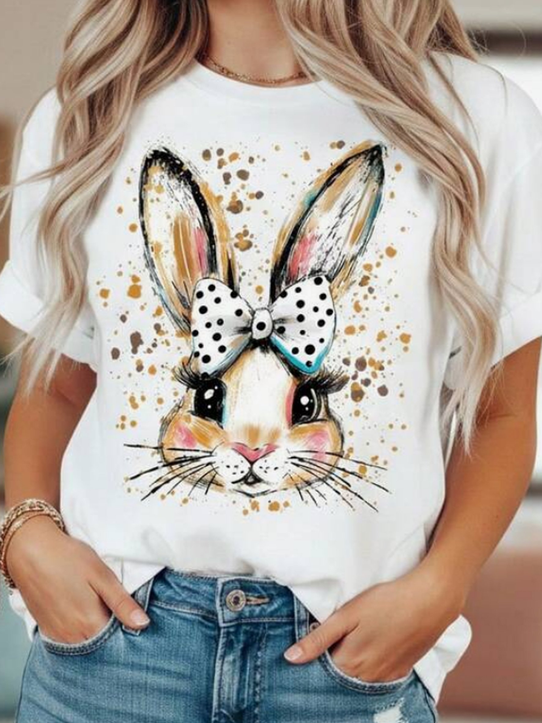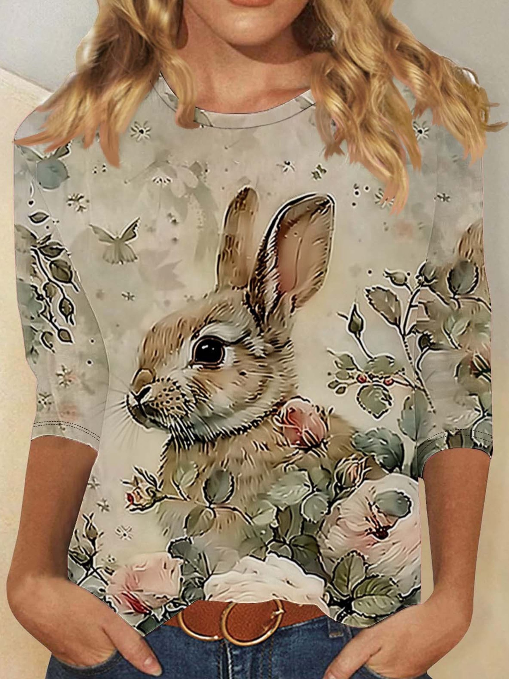 Women's Cute Rabbit Print Casual T-Shirt