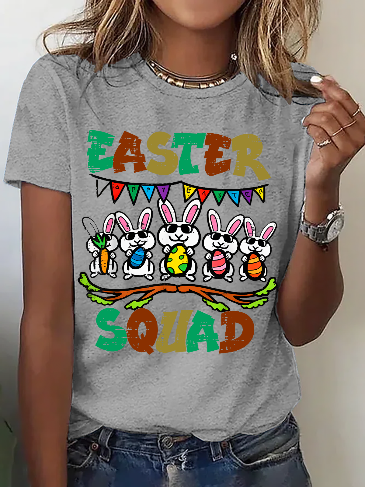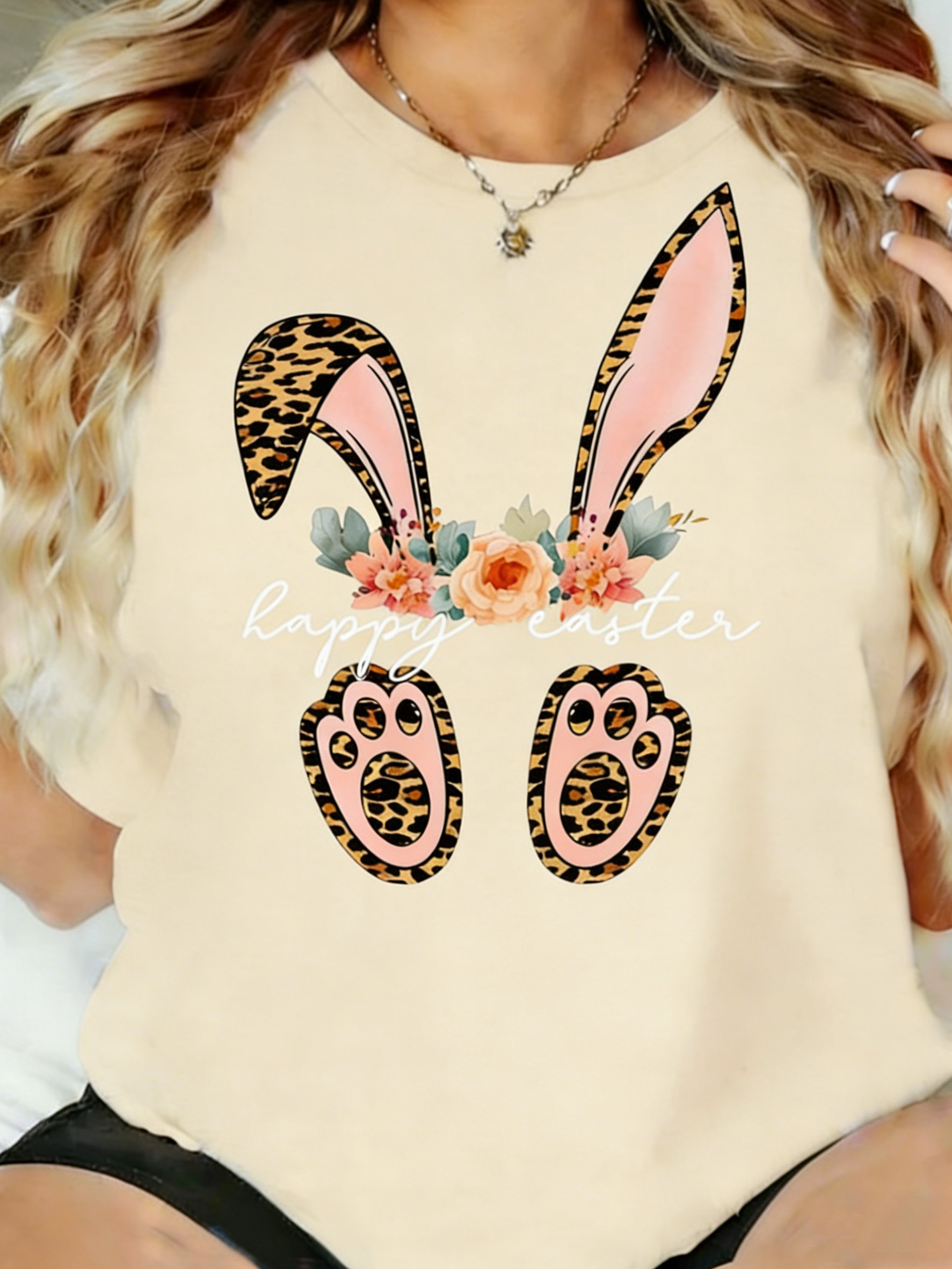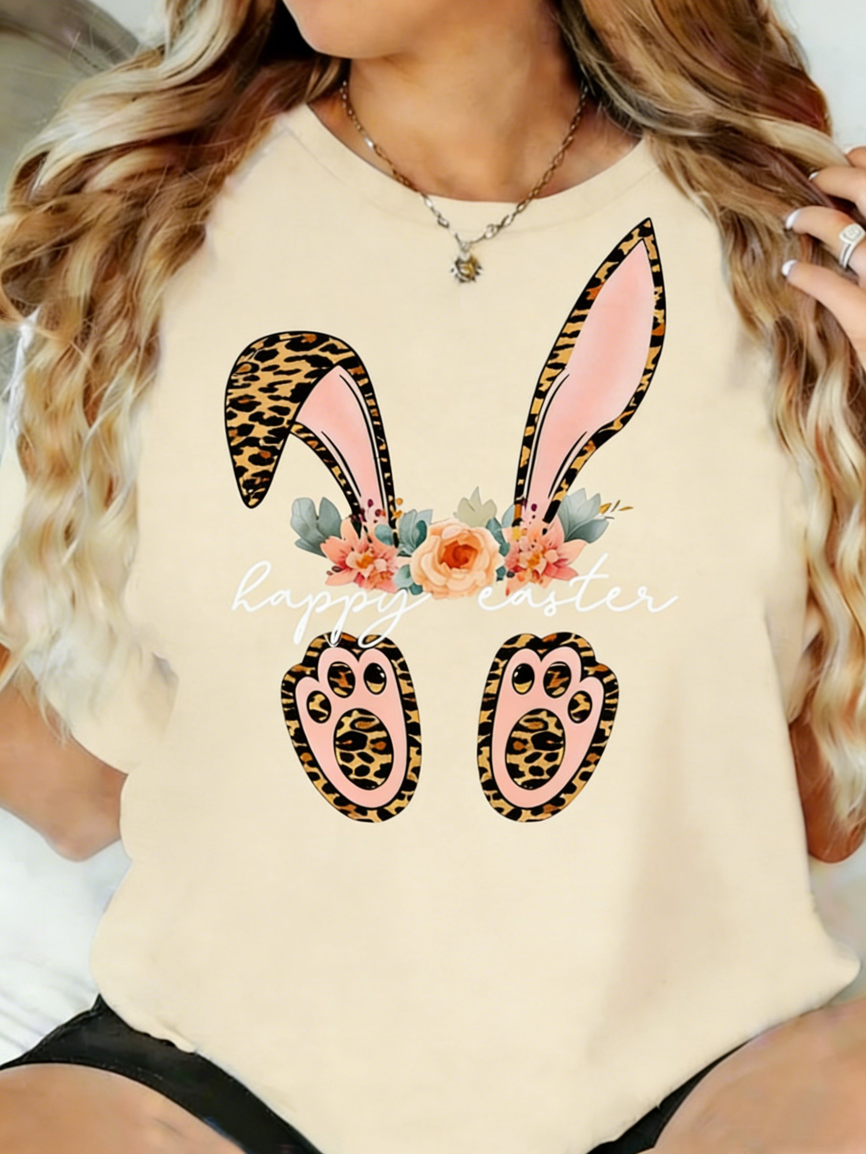 Women's Easter Bunny Print Crew Neck T-Shirt