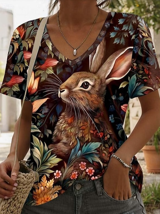 Women's Cute Bunny Pattern V-Neck T-Shirt