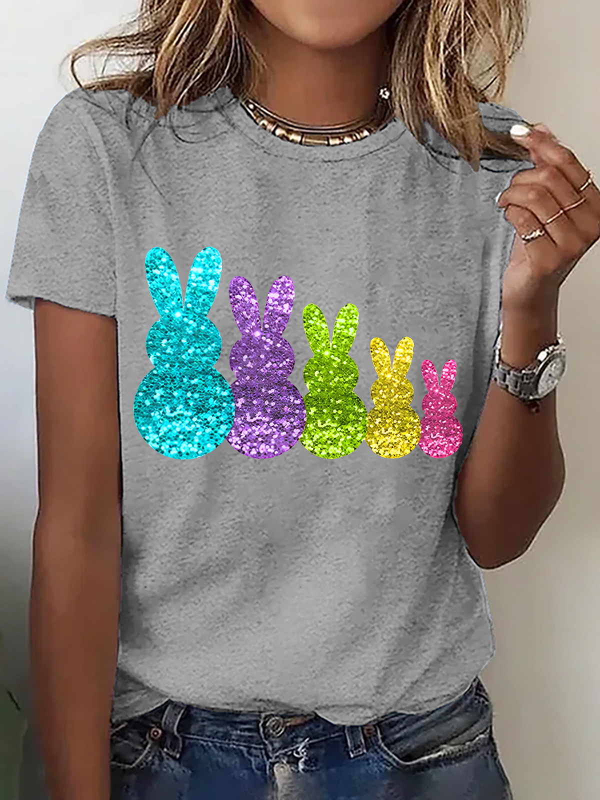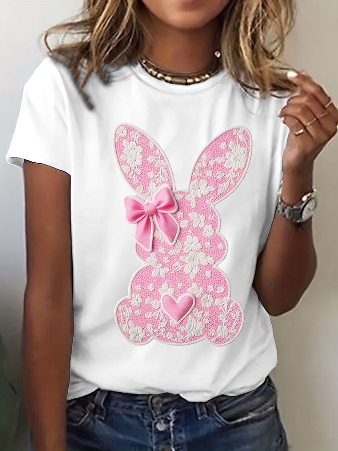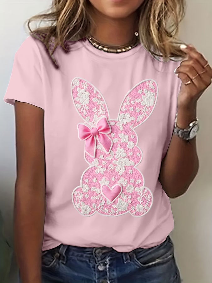 Women's Easter Bunny Printed Short Sleeve T-Shirt
