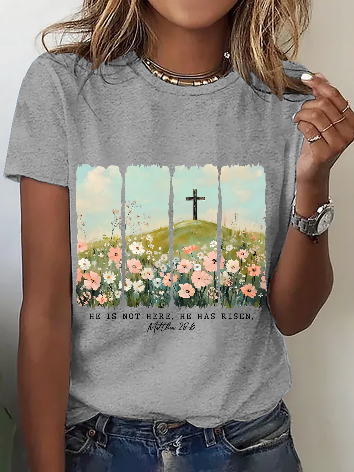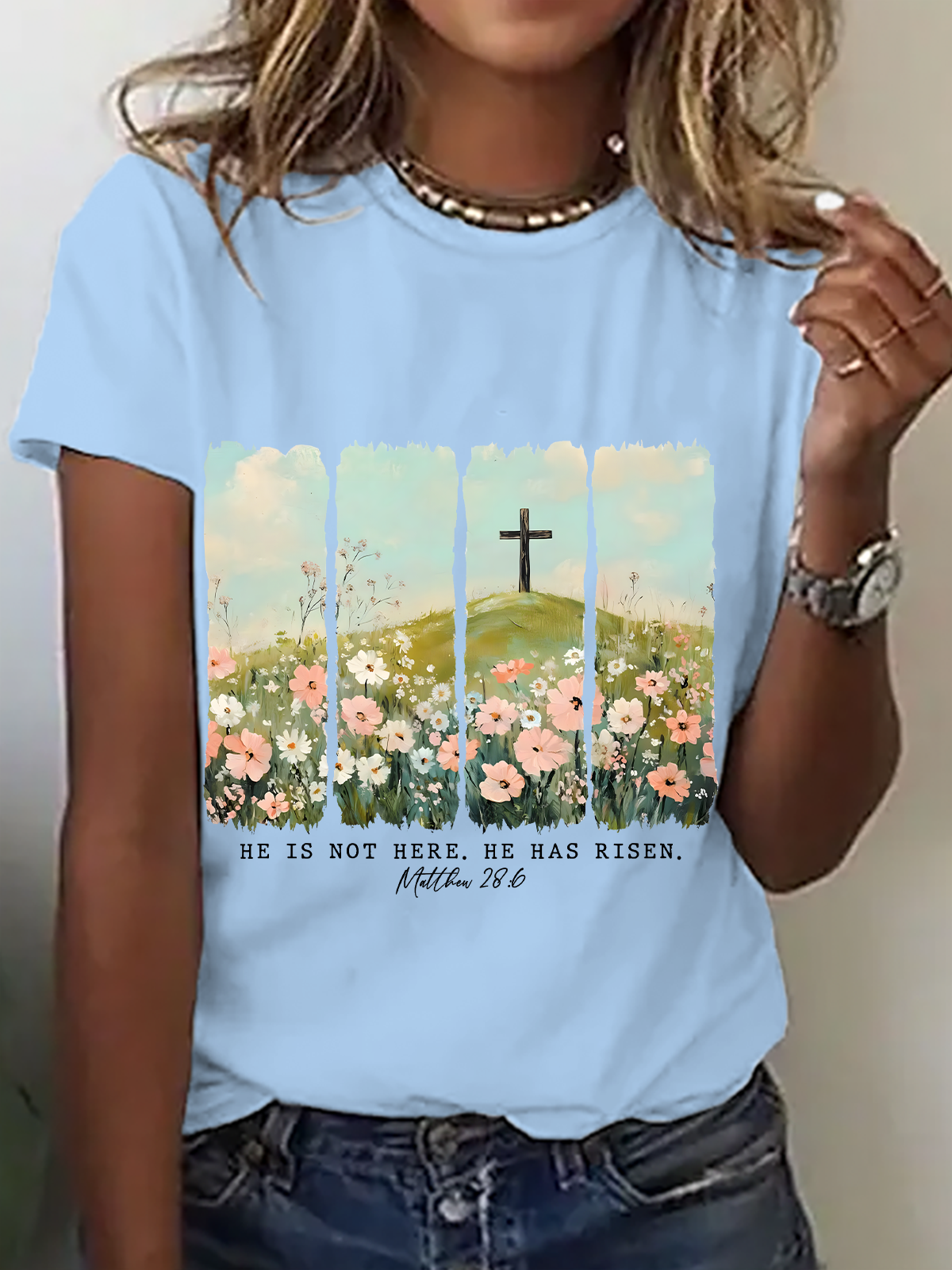 Women's Eatser Faith He Is Not Here He Has Risen Printed Top