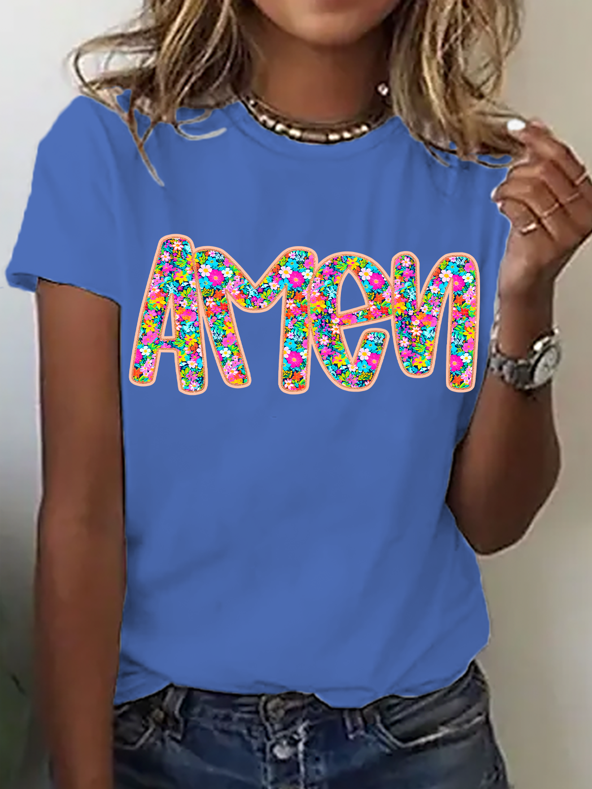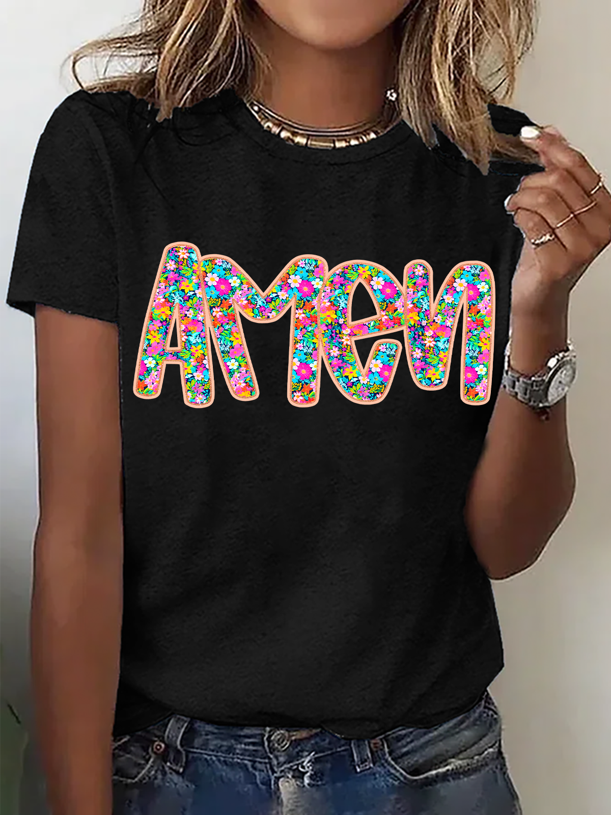 Floral Glitter Amen Easter Cotton T-Shirt