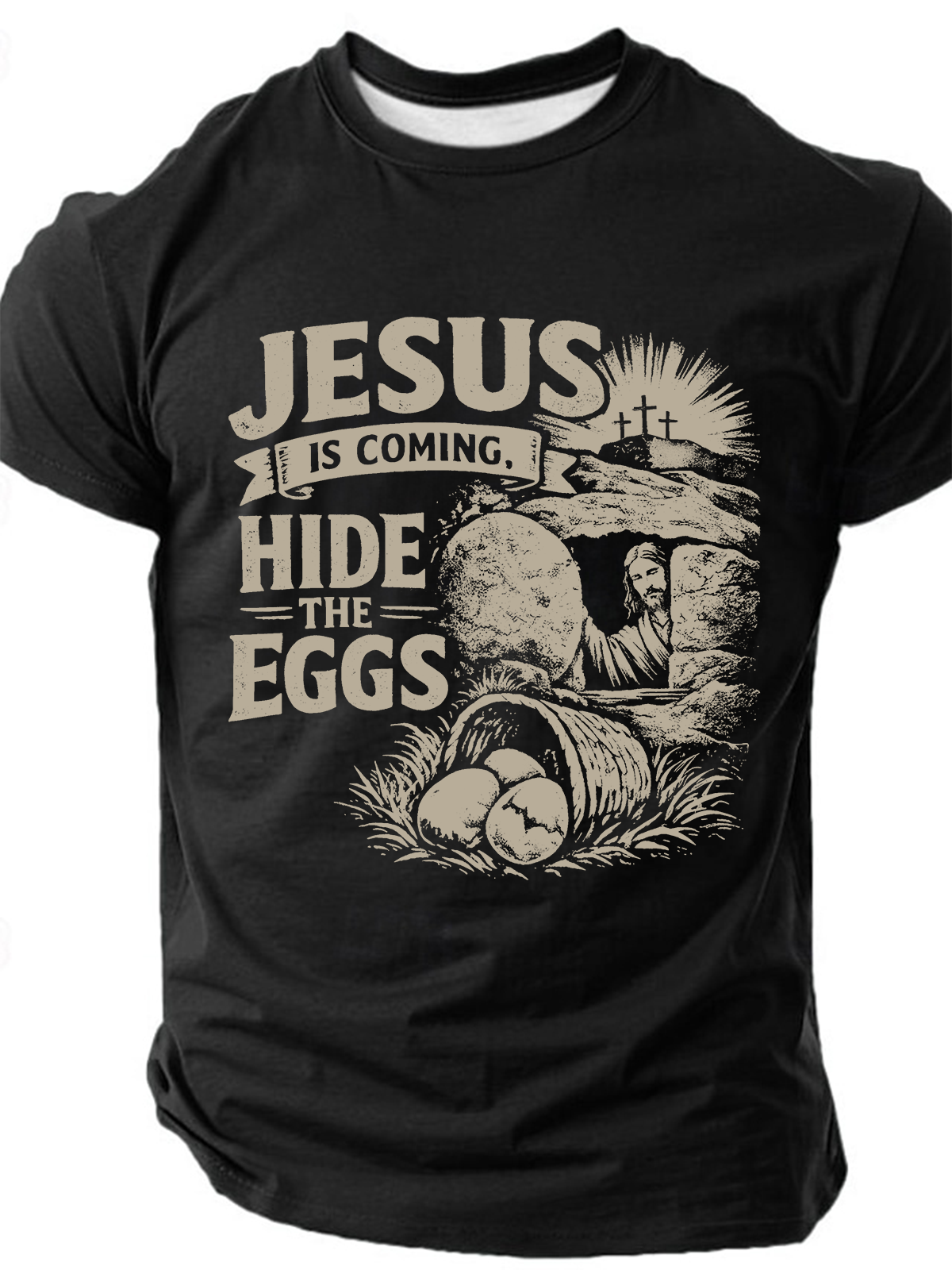 Men's Funny Easter T-Shirt Jesus is coming, hide the eggs Adult Humor Easter Shirt