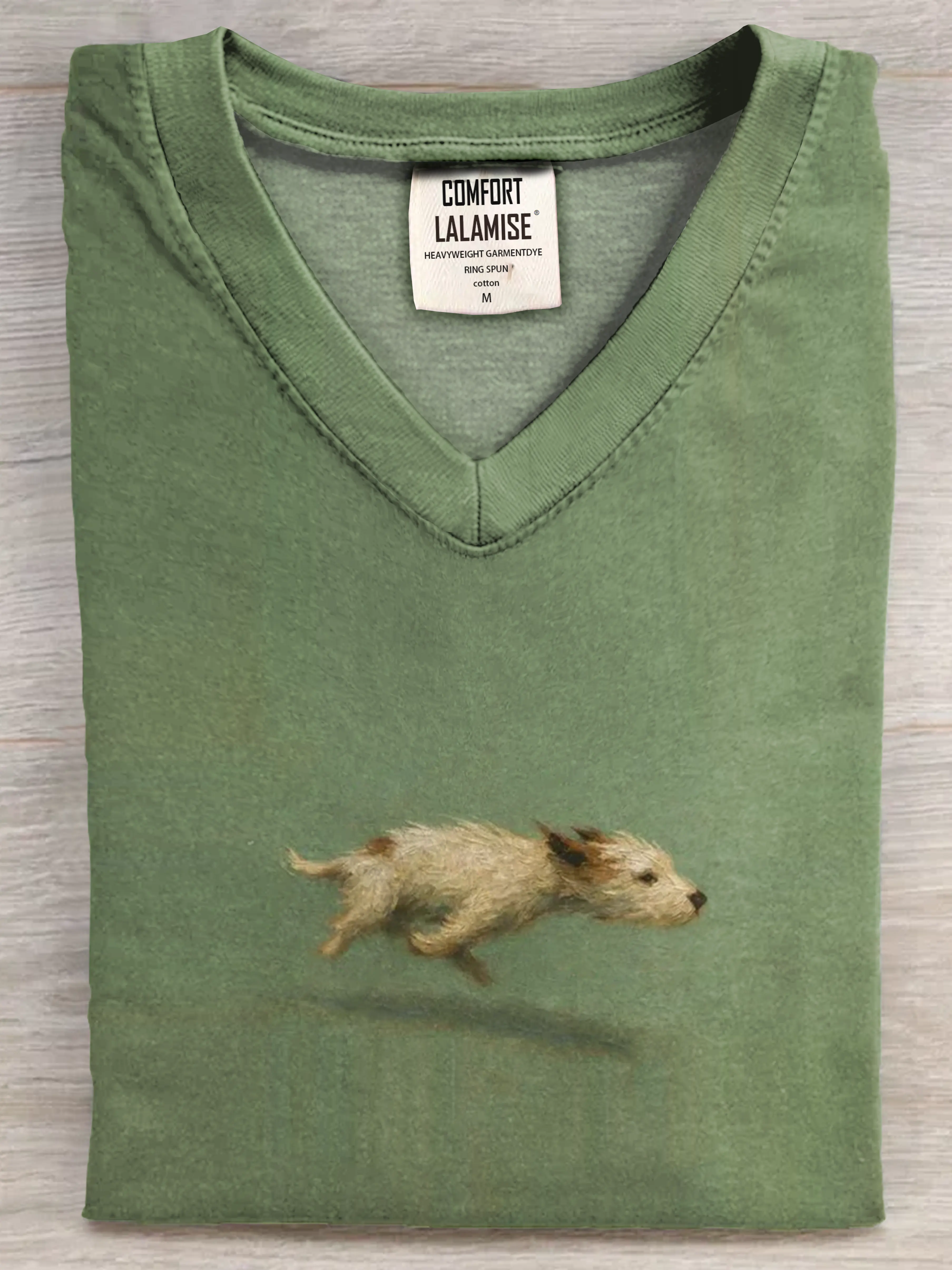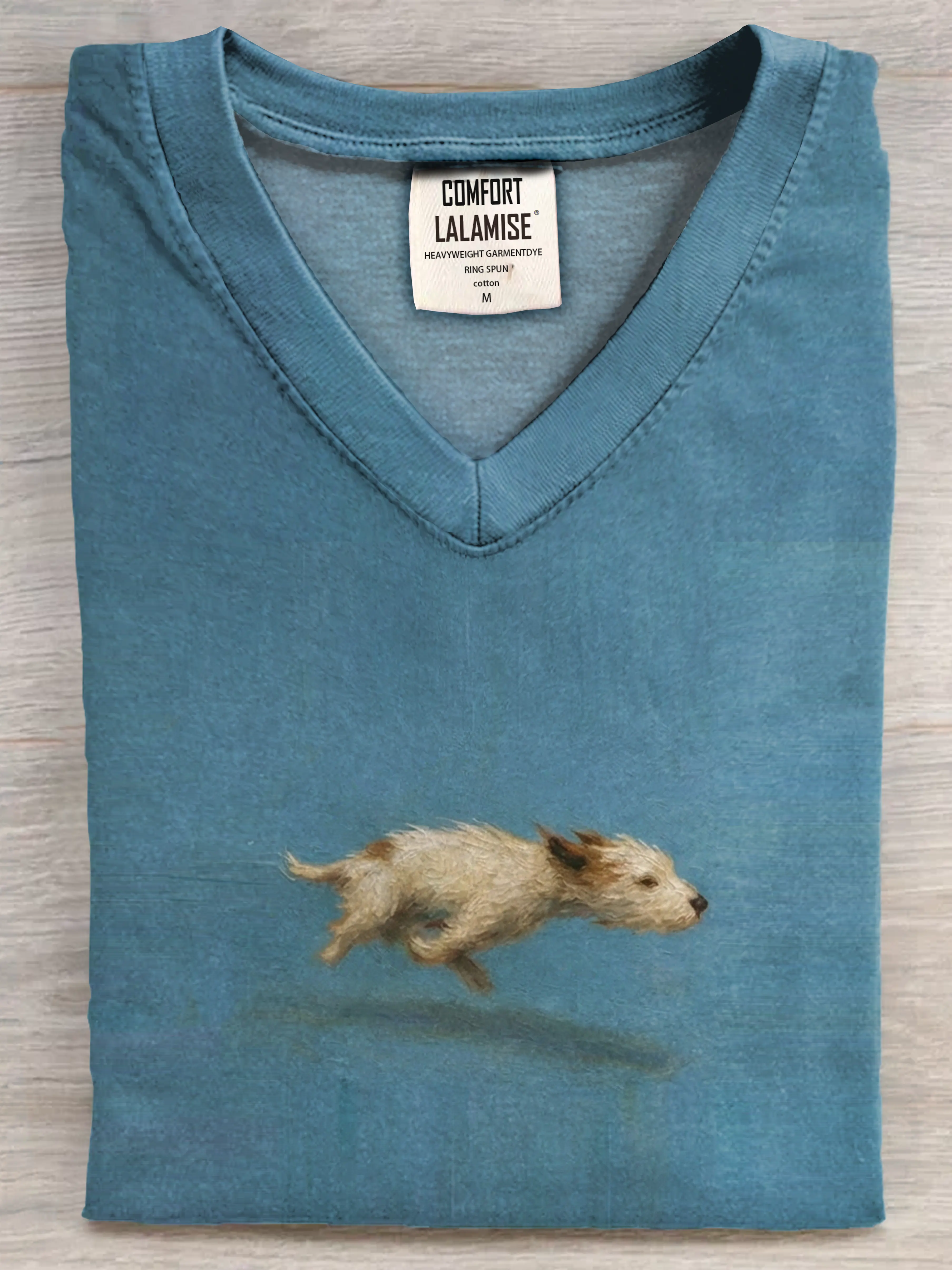Funny Cute Running Dog Art Print V-neck Casual T-shirt