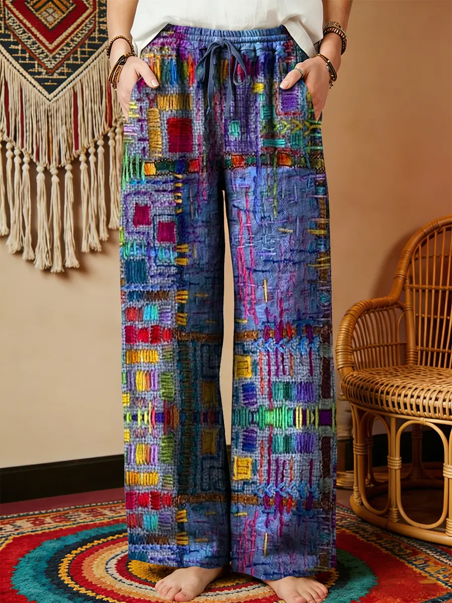 Ethnicity Geometry Texture Women's Printed Cotton And Linen Casual Pants