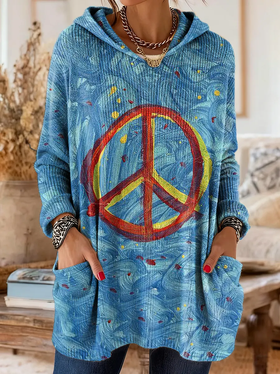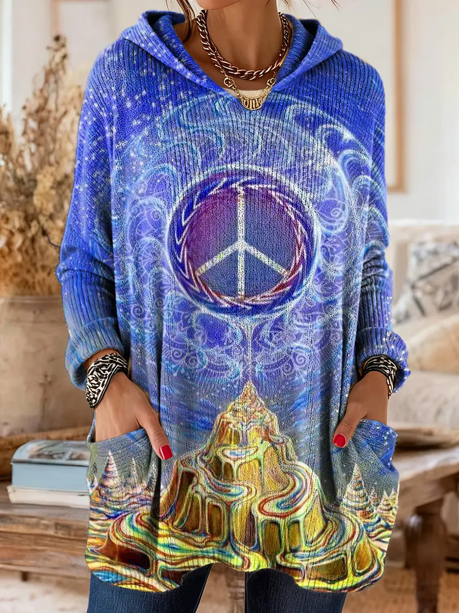 Women's Art Print Hooded Sweatshirt With Pockets In Hippie Style