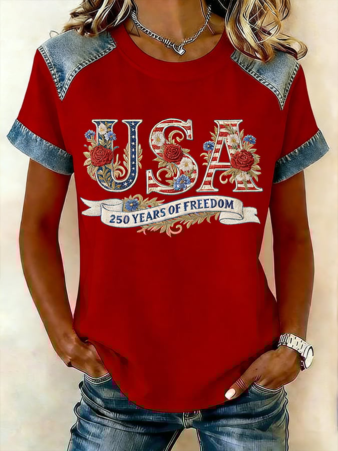 Women's 250th Anniversary American Flag Vintage Floral Print Long-Sleeve Top