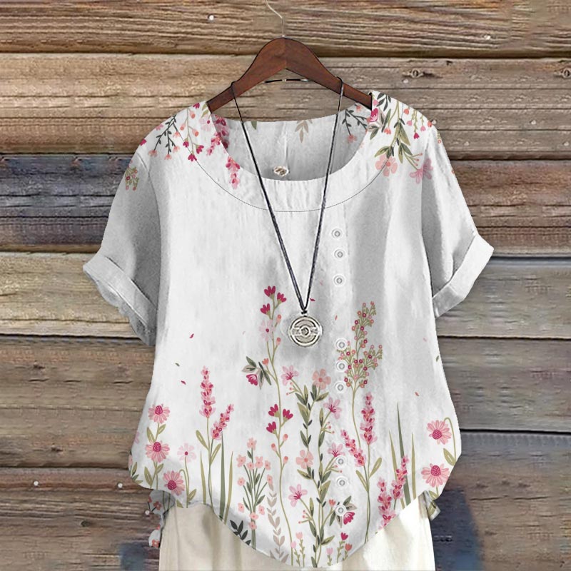 Dashingsoul Literary A Field Of Flowers Art Print Short Sleeve Blouse