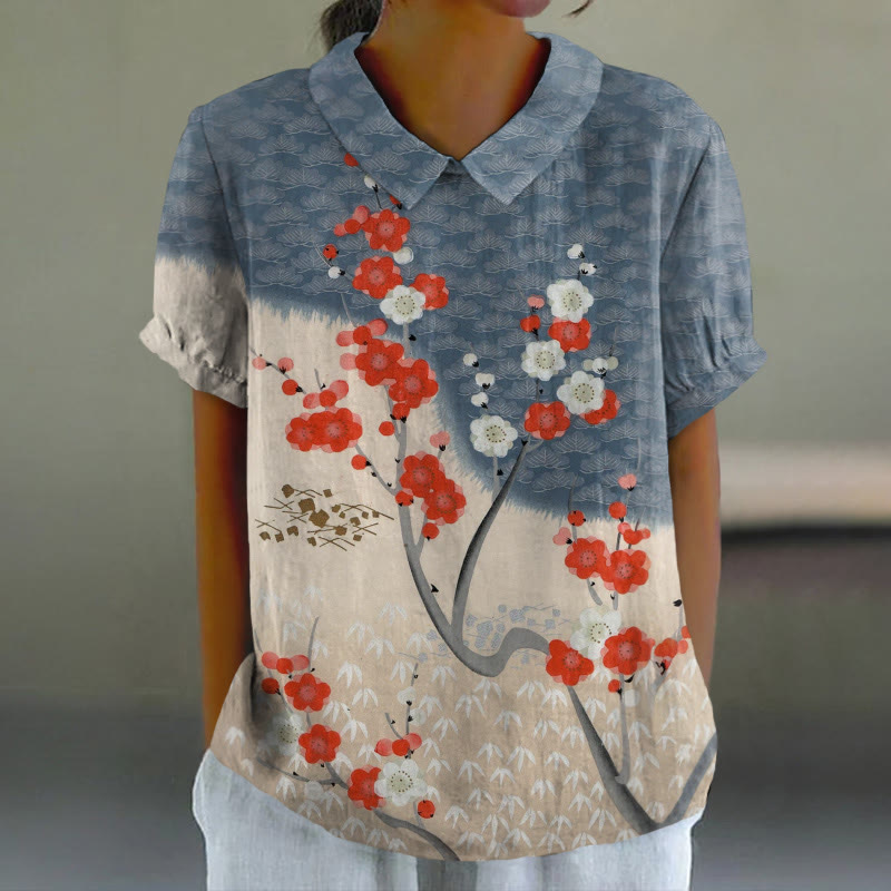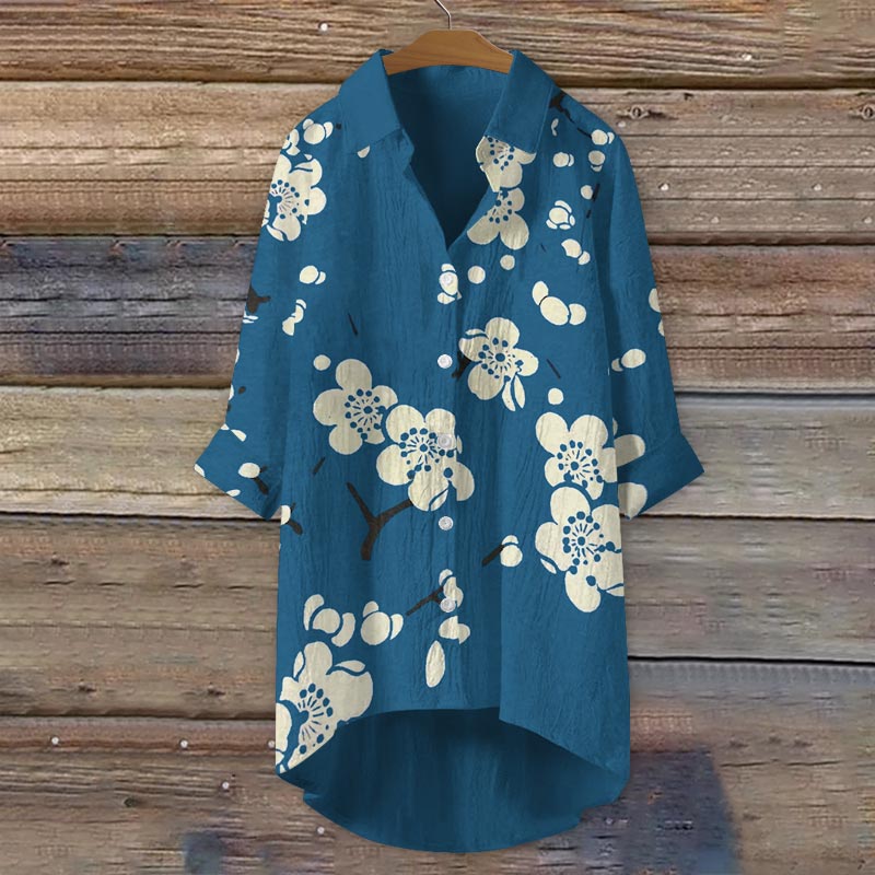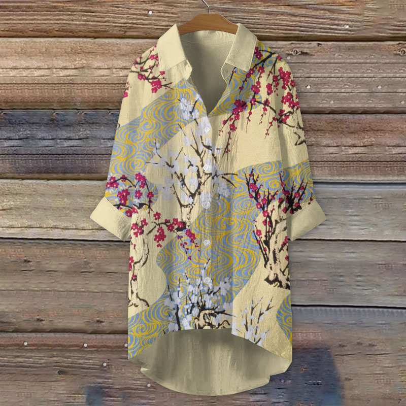 Dashingsoul Antique Japanese Style Plum Blossom Wave Print Casual Shirt