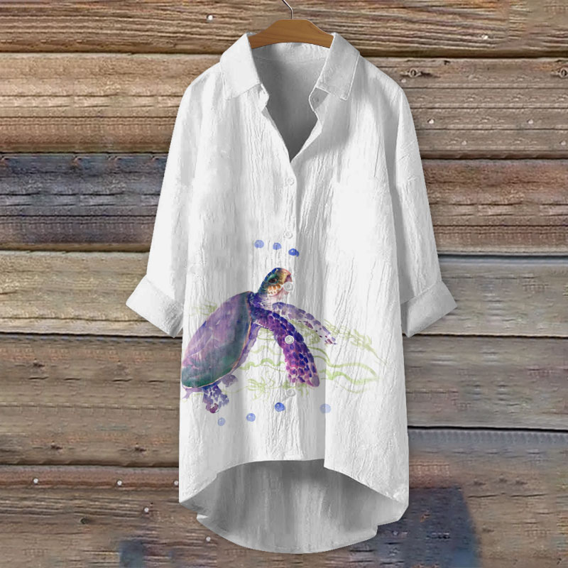 Dashingsoul Literary Watercolor Turtle Print Casual Shirt