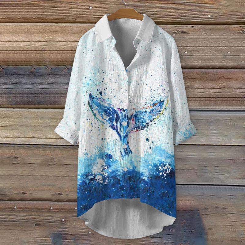 Dashingsoul Fantasy Multicolor Whale Tail Watercolor Art Print Casual Shirt