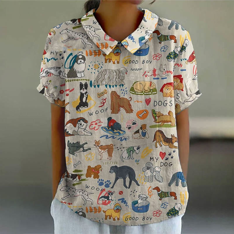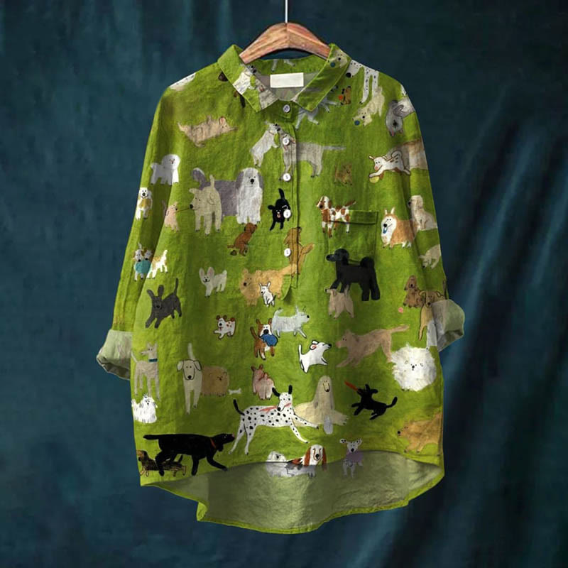 Dashingsoul Women's Multiple Pet Dogs Paradise Art Print Casual Lapel Loose Blouse