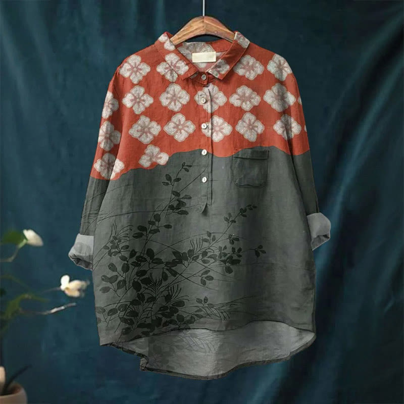 Dashingsoul Japanese Patchwork Floral Print Casual Lapel Blouse