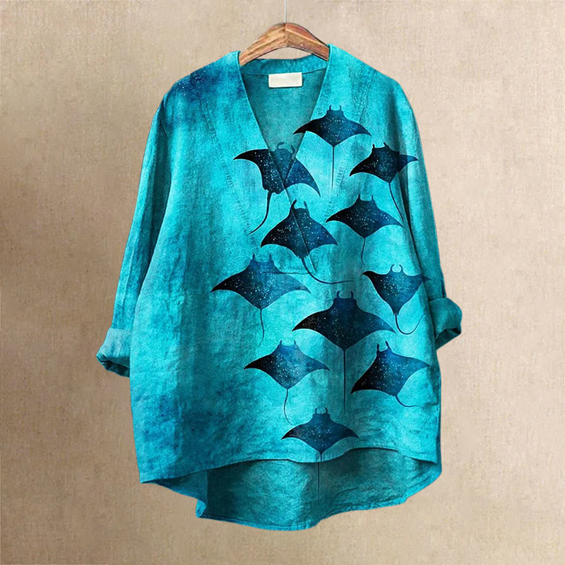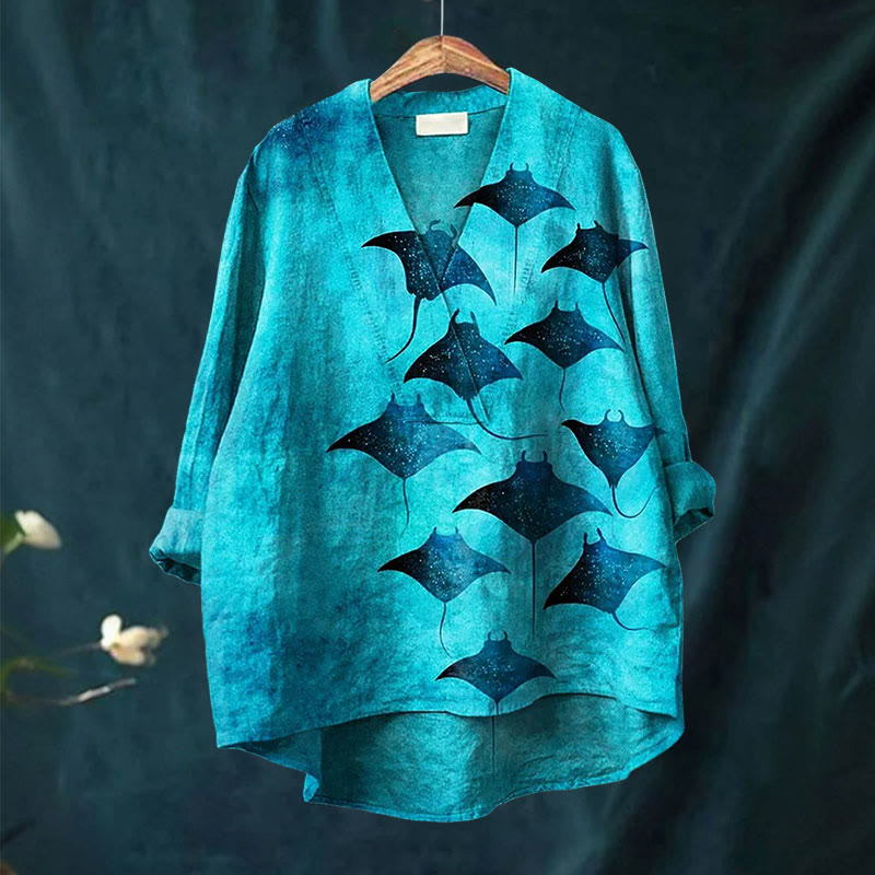 Dashingsoul Manta Rays Art Printed Casual V-neck Shirt