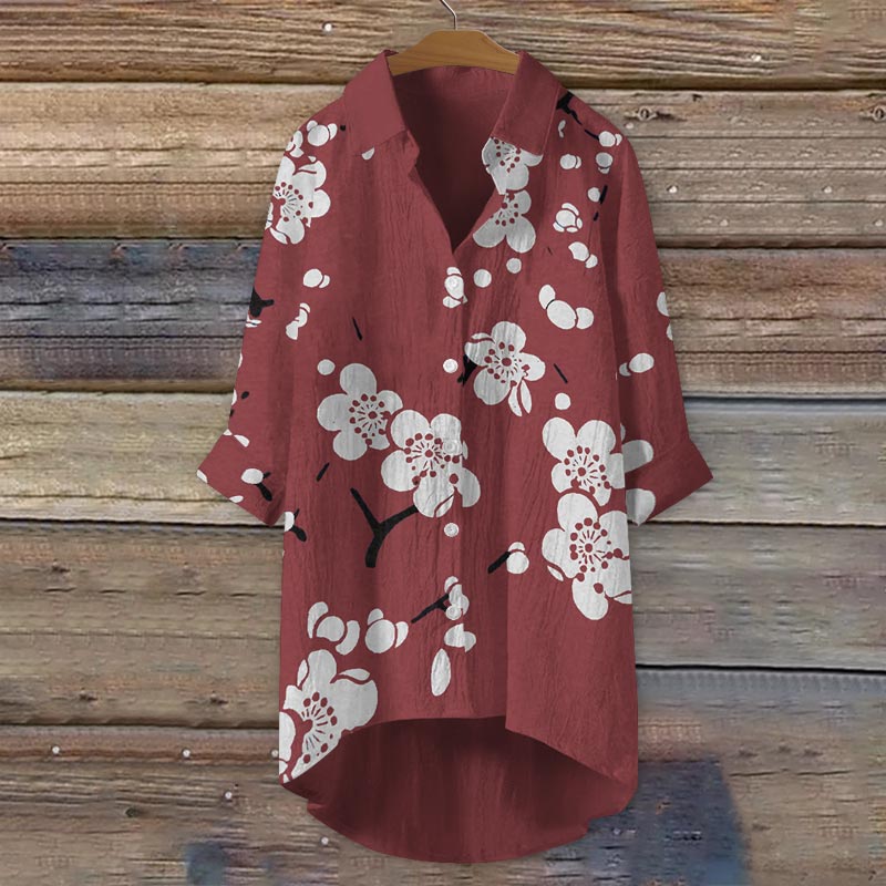 Dashingsoul Plum Blossom Japanese Lino Art Print Casual Shirt