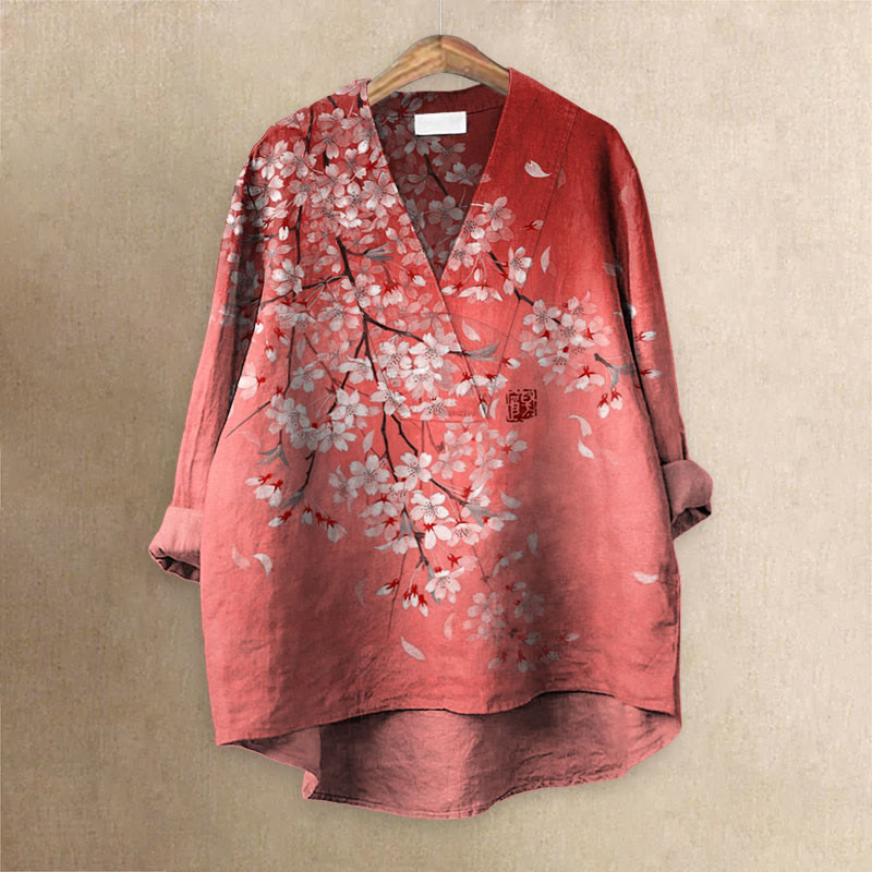 Dashingsoul Japanese Art Cherry Blossom Print Casual Lapel Loose Blouse