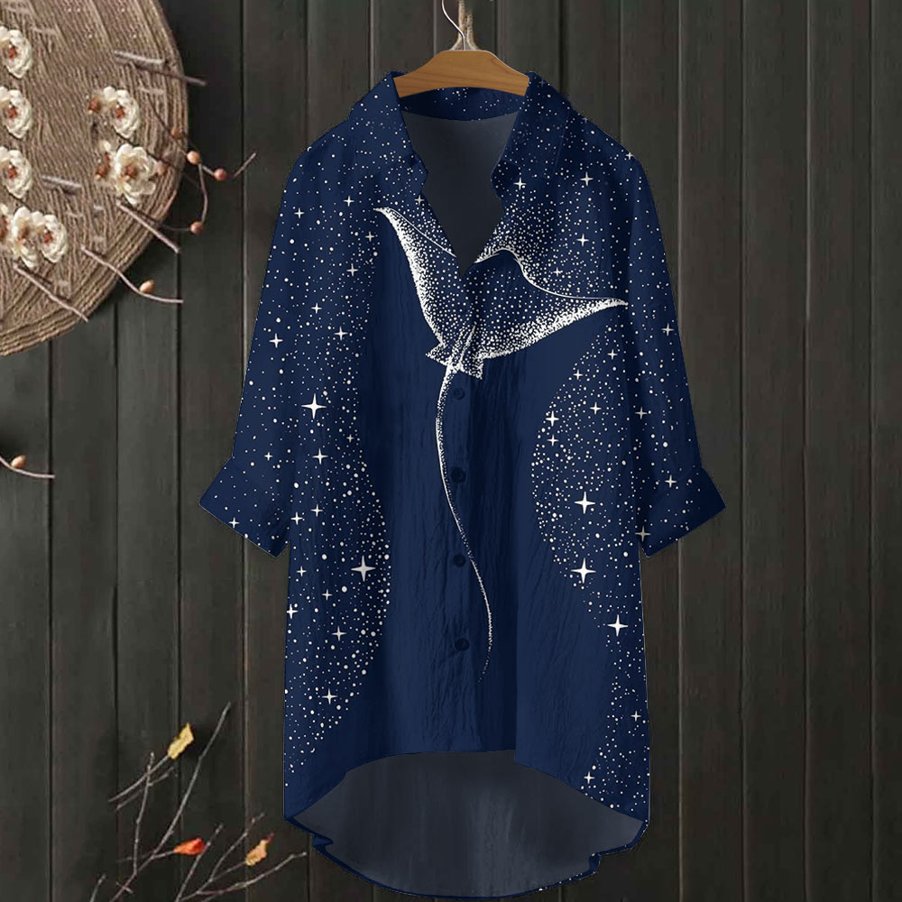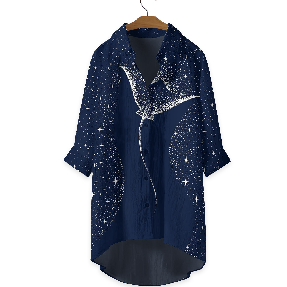 Dashingsoul Starry Spotted Eagle Rays Print Casual Shirt