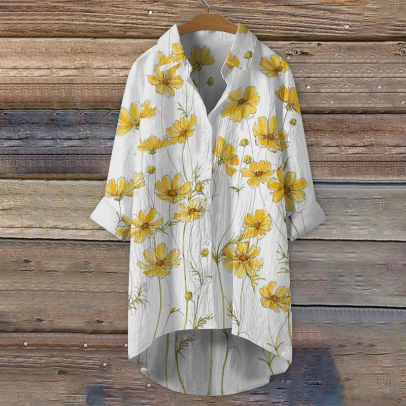 Dashingsoul Women's Yellow Cosmos Flowers Art Print Casual Shirt