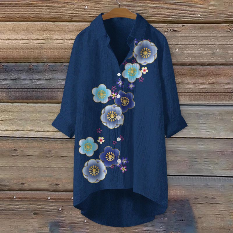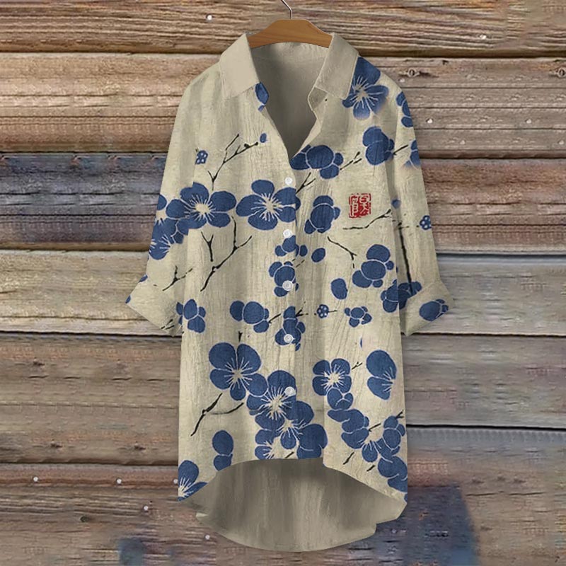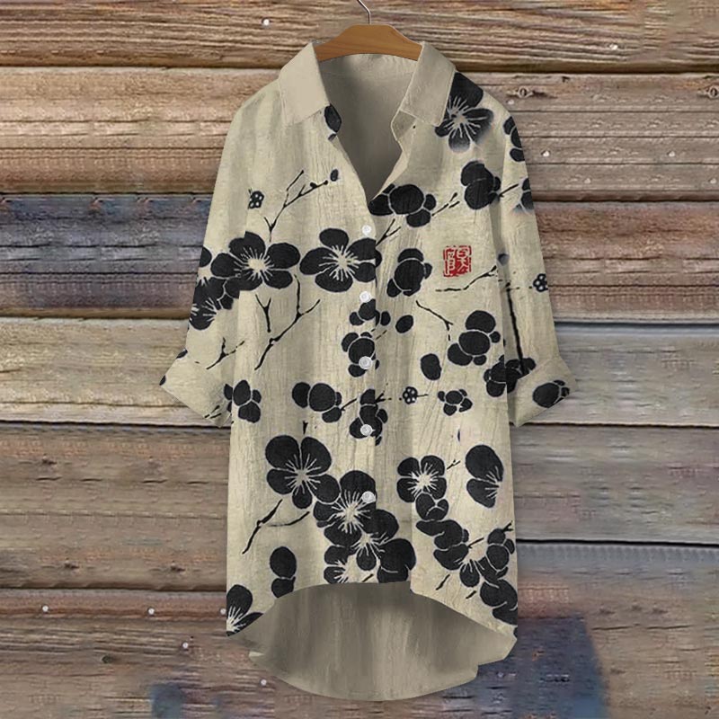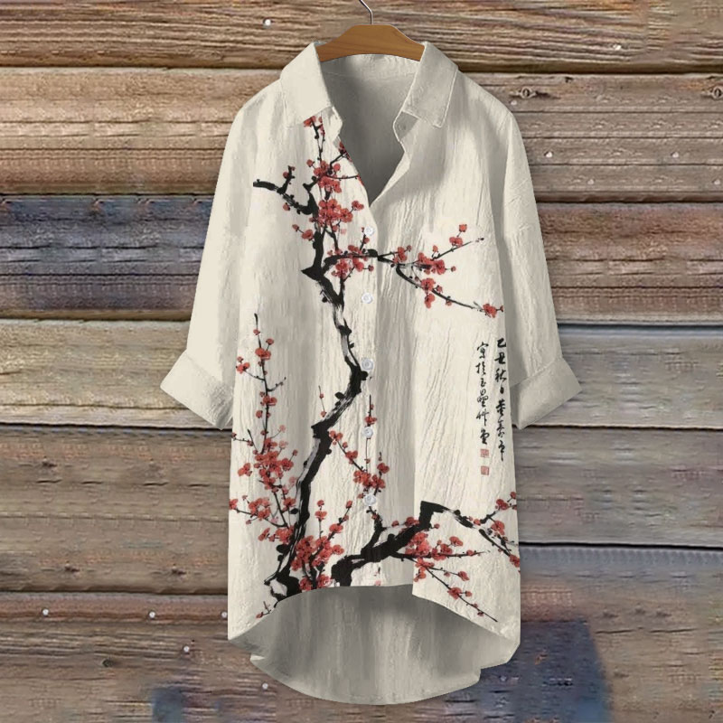 Dashingsoul Retro Plum Blossom Japanese Print Casual Shirt
