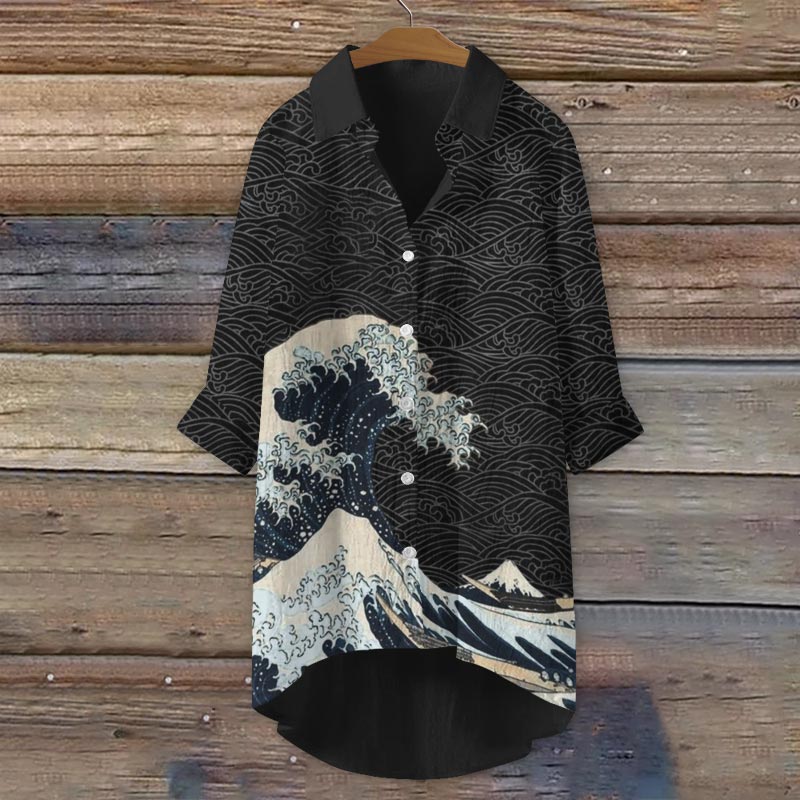 Dashingsoul Japanese Wave Inspired Graphic Print Casual Shirt