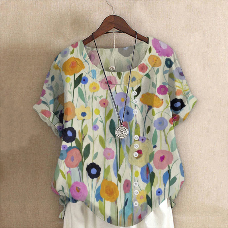 Dashingsoul Oil Painting Spring Field Art Printed Blouse
