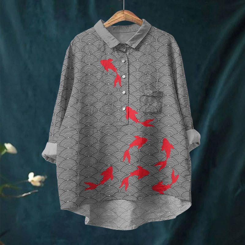 Dashingsoul Japanese Goldfish Art Print Casual Lapel Blouse