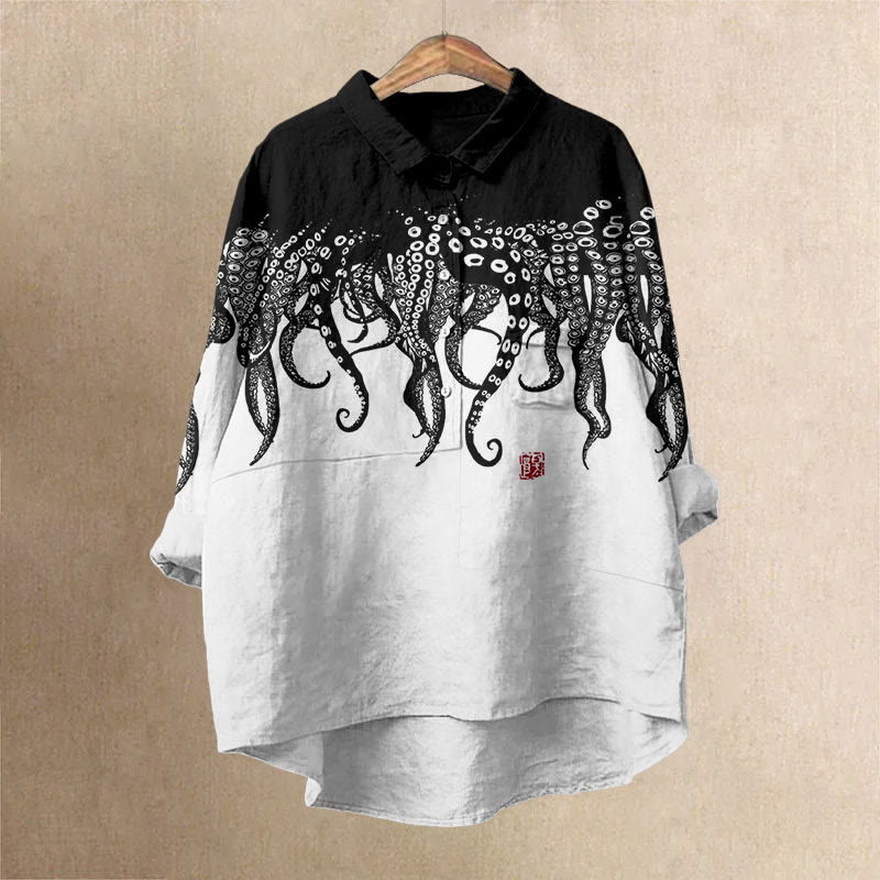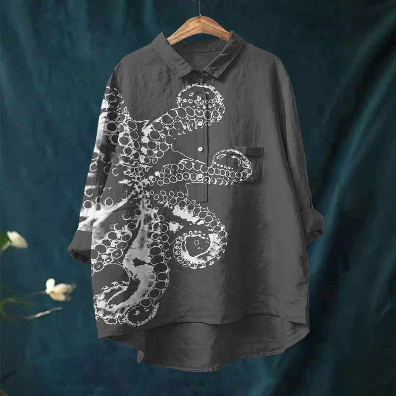 Dashingsoul Octopus Asymmetric Print Casual Lapel Blouse
