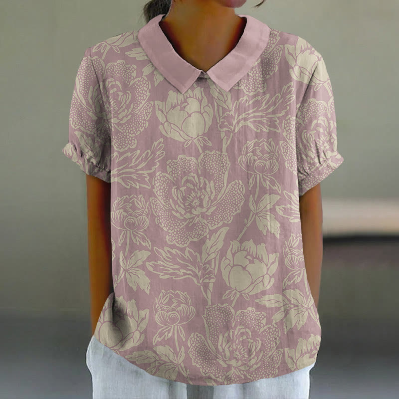 Dashingsoul Women's Vintage Floral Art Lapel Loose Blouse