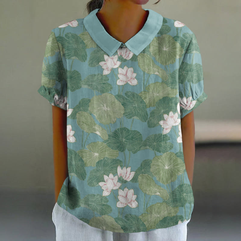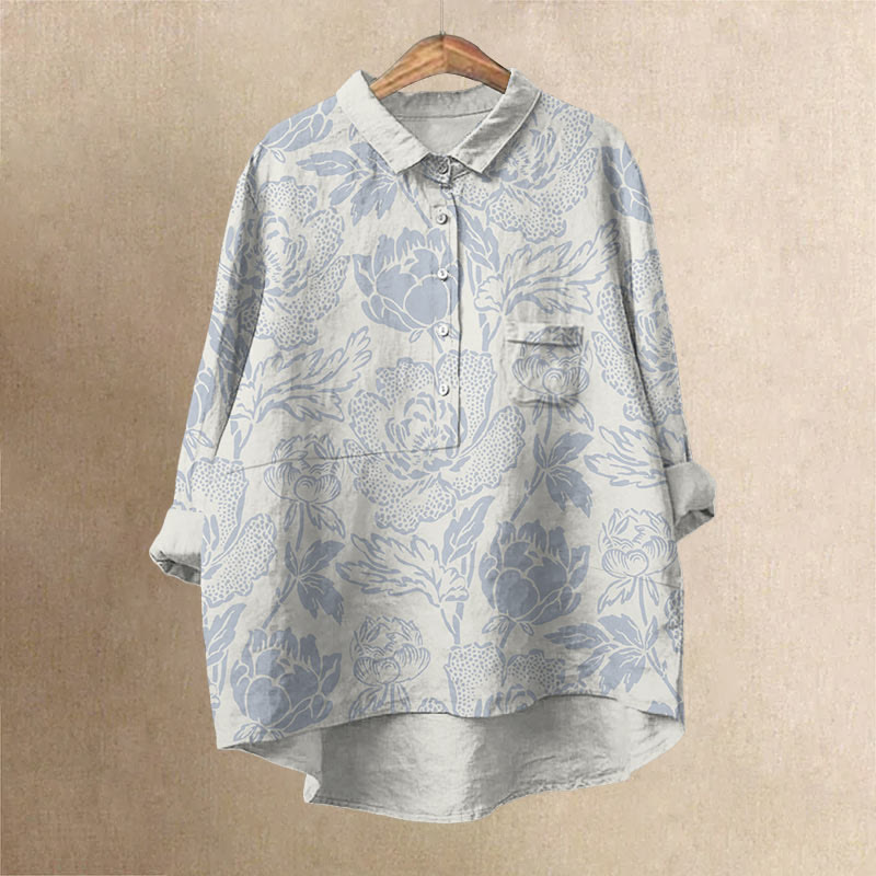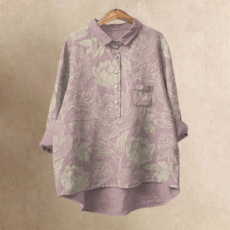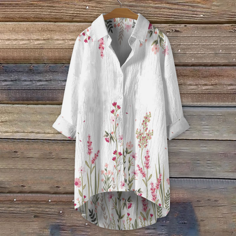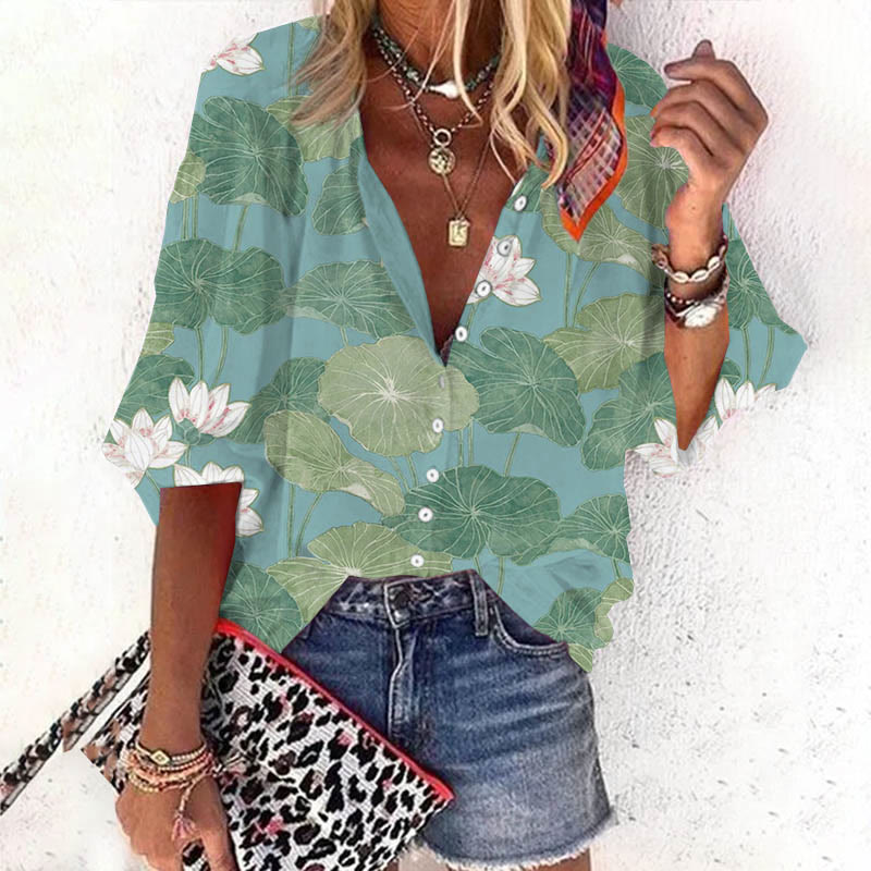 Dashingsoul Women's Vintage Lovely Lily Art Print Casual Lapel Loose Blouse