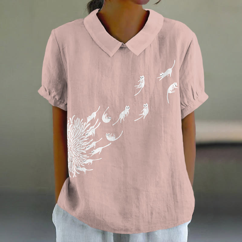 Dashingsoul Abstract Creative Dandelion Cat Painting Art Casual Lapel Loose Blouse