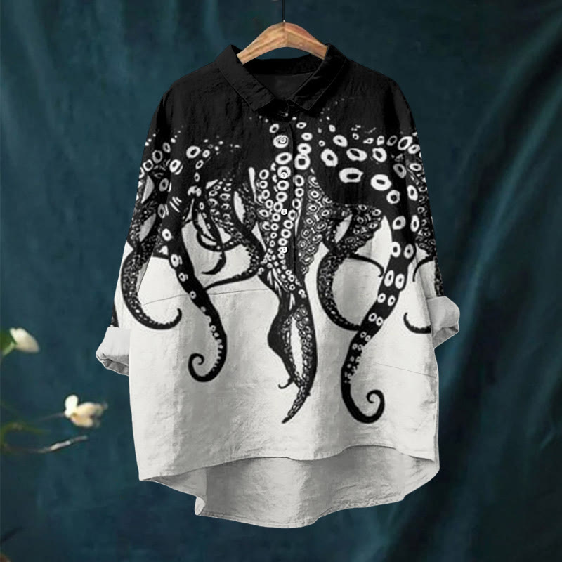 Dashingsoul Octopus Tentacles Contrasting Print Casual Lapel Blouse