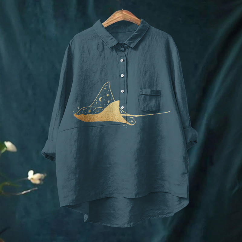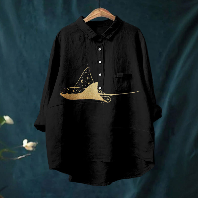 Dashingsoul Starry Spotted Eagle Rays Print Casual Lapel Blouse