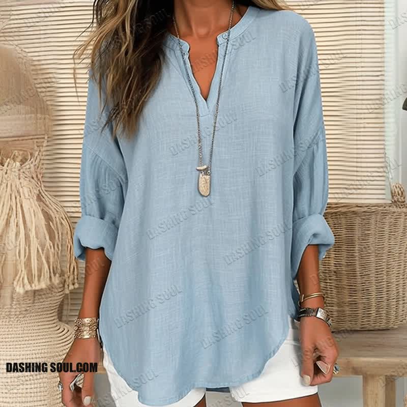 Women's Solid Color V Neck Long Sleeve Blouse